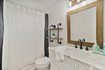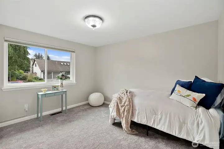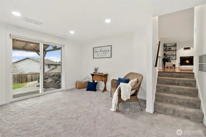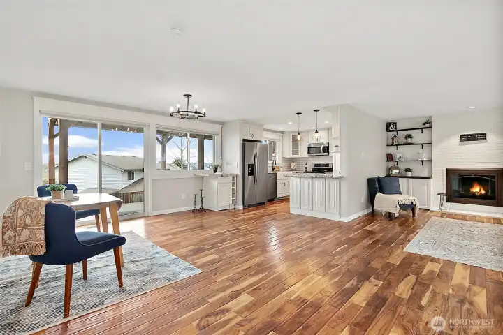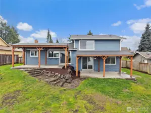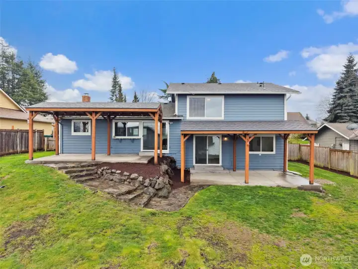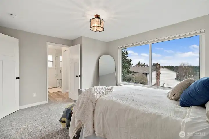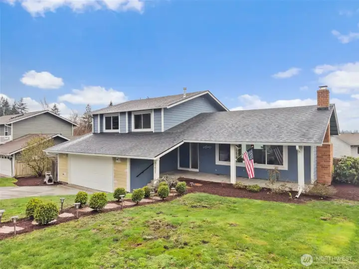 Beautifully updated 4-bedroom, 2.5-bath home blending modern style with functional living. Fresh interior paint, new carpet, newer windows, newer furnace, and new exterior siding and paint create a crisp, move-in-ready feel. Main level features engineered hardwood flooring, abundant natural light, and an open-concept living and dining area alongside an updated kitchen with white cabinetry, slab granite countertops, stainless steel appliances, and pantry. Spacious primary suite offers an en suite bath and dual closets, including a walk-in. Lower level includes a versatile family room, separate laundry room, 4th bedroom, and access to the attached 2-car garage. Recent improvements include a newer roof, newer plumbing updates, newer hot water heater, newer driveway, and additional kitchen updates. Saltwater and mountain views add to the appeal, while the fully fenced backyard offers a covered concrete patio, in-ground sprinkler system, and room to relax, entertain, or create a future hot tub area. HOA includes access to stocked private lakes, a highly responsive security force, and optional golf and country club membership.