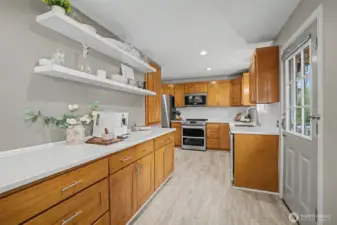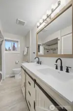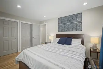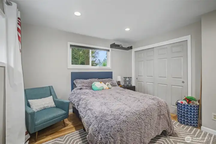 Don't miss this updated 4 bed home situated on a dead end road! Upstairs: Kitchen (new fridge/quartz countertop/undermount sink) flows directly into dining area, continuing into spacious living room with refinished hardwood floors, picture windows and relaxing fireplace. 3 roomy bedrooms are located down the hall, along with a full bathroom (new vanity/light fixture). Downstairs: New carpet down the stairs leads into a large utility room. Adjacent lies the huge family room and second fireplace. There is also another bedroom, bathroom and bonus room! The house has been replumbed from original and electrical panel (with generator hookup) was recently replaced. The mature landscaping feels serene and park like, all while being close to the freeway, airport, bus lines and local amenities. Come see for yourself!!
