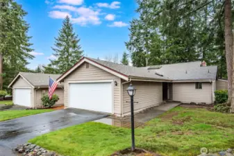 Light and bright one-story condominium in coveted Fircrest. Towards the end of a quiet cul-de-sac, with no neighbor to the back, this comfortable condo lives like a single-family residence. Vaulted ceilings in the dining room seamlessly flow to a cozy living room which in turn transitions to a sweet sunroom. A generous primary with en suite and large closet also connects to the sunroom. An additional large bedroom and optional 3rd bedroom/office allows for plenty of space. Eat-in kitchen with tons of cabinets and storage includes updated gas cook top. Systems have been meticulously maintained, and the home has been well cared for. Monthly dues take care of EVERYTHING outside of the walls including large ticket items such as the roof, chimney, gutters, sidewalks, landscaping and roads. A fantastic opportunity in a fantastic community!