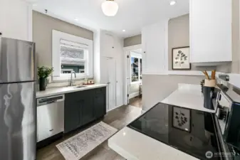 Nestled on Dibble Avenue, one of Whittier Heights most beloved streets, this picture-perfect 1924 bungalow blends original craftsmanship and modern livability. Step past storybook porch and classic red door to find the spacious living room with walnut-stained hardwood floors, original wood-burning fireplace, gorgeous period millwork & Southern windows that bathe the home in natural light. The updated kitchen features quartz countertops, newly painted cabinetry, stainless appliances and large dining nook- plus easy access to the back yard for indoor/outdoor living. The two bedrooms on main floor feel quintessentially Craftsman- warm, light filled and full of character. The remodeled full bath keeps the vintage vibe intact. Downstairs, two more bedrooms and a spa-like bath with subway tile, frameless glass shower floating wood-tone vanity, and matte black fixtures. A dedicated laundry room and generous storage round out the lower level. Take comfort knowing this home was lovingly maintained: New windows, Central AC, newer roof and furnace, fresh exterior and interior paint- ready for you to enjoy. The backyard is built for entertaining-anchored with the grand stone patio and perfect for BBQs and dinner parties. The rest of the lush garden is meant to be meandered — mature trees, blooming vines, and fire pit to gather at for magical evenings. Rare, detached garage & off-street parking. Steps to Mainstay Provisions & Stumbletown on 65th and minutes to Downtown Ballard