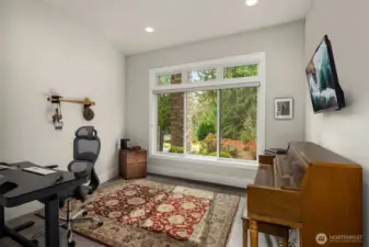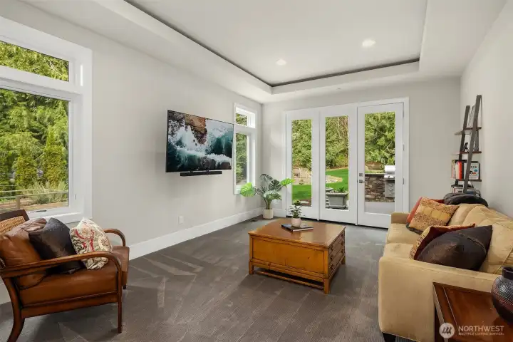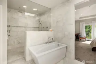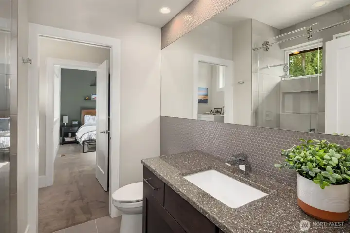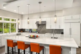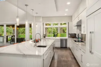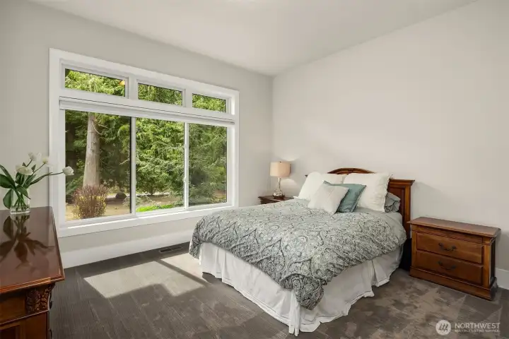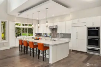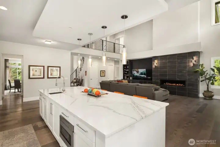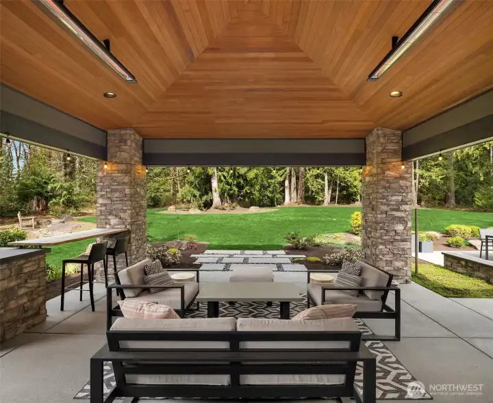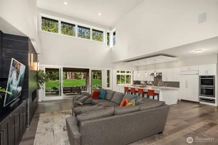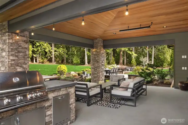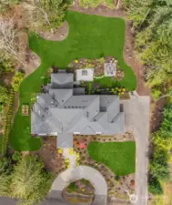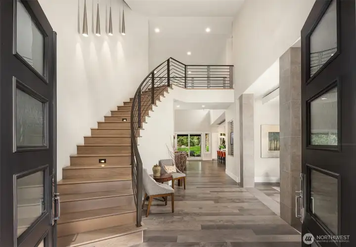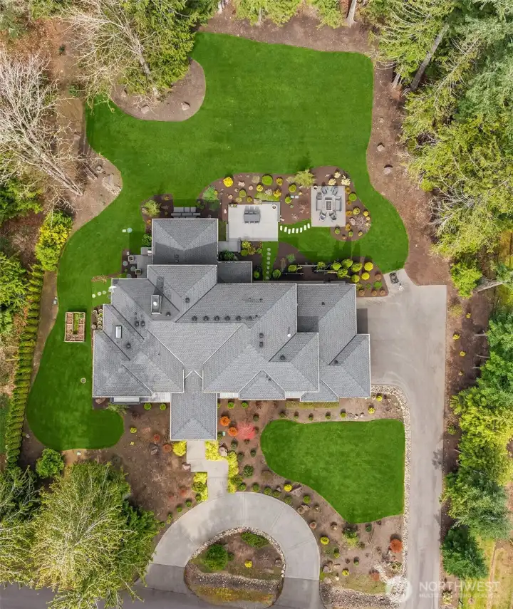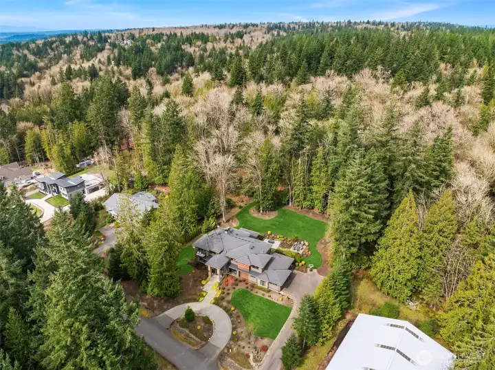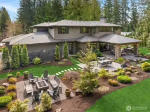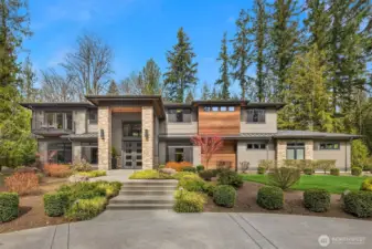 A sweeping circular drive, framed by beautifully manicured grounds, creates a grand welcome to this exceptional shy-acre contemporary estate. Designed and built as the personal residence of NW Builder Group, the thoughtful layout and craftsmanship shine throughout. A dramatic entry opens to a striking great room, where soaring windows frame serene, private grounds and invite seamless indoor-outdoor living. Stunning and functional, the kitchen offers a true culinary experience with quartz slab surfaces, Miele and Sub-Zero appliances, induction cooktop with pot filler, double ovens with warming drawer, and a built-in coffee station beside the butler’s pantry, while flowing effortlessly to the dining room and wine room. The main level also features a private office, en-suite guest room, bonus room, and an expansive mudroom with laundry and dog-wash station. Upstairs, the primary suite is a peaceful retreat with a private balcony, fireplace, spa-like bath with soaking tub and dual ceiling-mounted rain showers, walk-in closet, and fitness studio just steps away. Two en-suite bedrooms, a theater, and additional office/bed complete the upper level. Outside, lush gardens, a heated covered patio with built-in BBQ and bar, dining patio, and gas fire pit create a true sanctuary. Enjoy exceptional privacy, a 1,300 sq ft 4-car garage, driveway/sport court, automatic generator, and extensive updates—just minutes to Microsoft, Amazon, Meta, and Google.