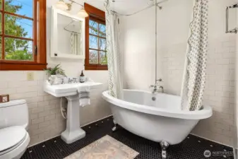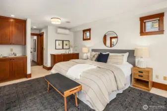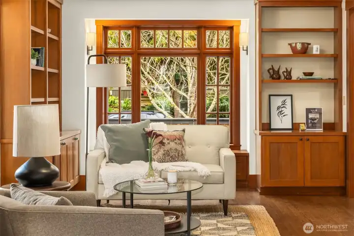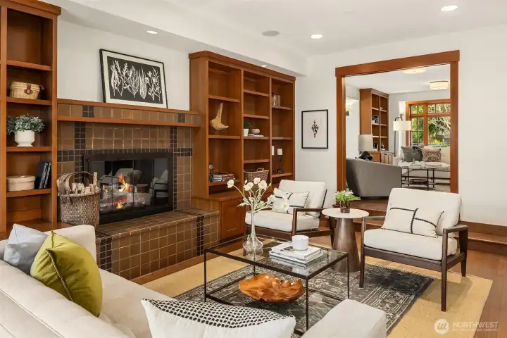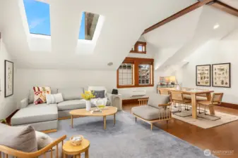 Fabulous, like-new shingled Madrona home in superb condition nestled atop the hill- Stylish residence with Beautiful finish work throughout found in all rooms and sophisticated, elegant floor plan. Kitchen-family room offers outdoor dining, cozy fireplace, as well as top of the line appliances including new Wolf range-oven. Large kitchen island, pretty dining room. Gucci-papered powder room! Expansive primary suite with balcony, and sun-filled bath. Two additional bedrooms on second level, each quite spacious, and a bedroom/ bath on third floor adjacent to the rare and inviting top floor bonus room. Spacious deck with Lake Washington and Cascade views. The very special detached studio space is ideal for home office, exercise, retreat or playroom! Quality construction with oak floors, excellent wood windows and French doors. EV Charger. Two-car tandem garage. Gas furnace and mini-splits with AC. Friendly neighborhood locale close to the best of popular Madrona- quaint shops, restaurants, coffee shops and galleries as well as City library and transportation.