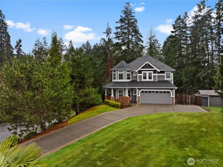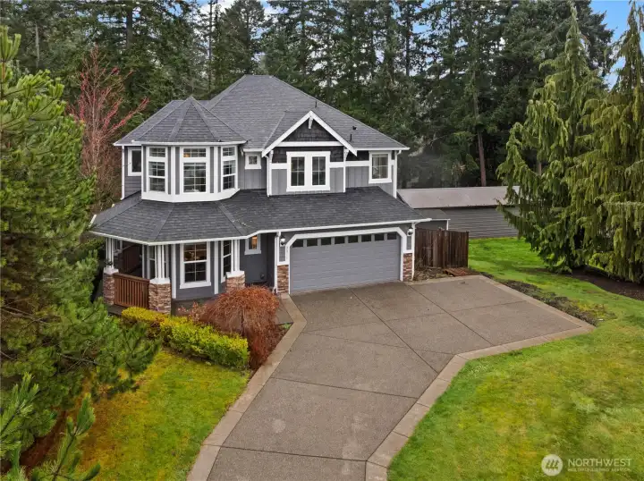 Experience refined Northwest living in this exceptional 5-bedroom, 3.5-bath residence with a spacious bonus room, ideally positioned to capture sweeping views of Lake Tapps—without the added cost of lakefront property taxes! Set on a half-acre lot, this home offers a rare blend of privacy, scale, and elevated design. The primary suite is truly a retreat—perched to take full advantage of the lake views, creating a peaceful and elevated sanctuary. The main level is thoughtfully designed for both everyday living and elegant entertaining, featuring an expansive open-concept layout that seamlessly connects the living, dining, and kitchen spaces. A large kitchen island anchors the space, perfect for hosting and gathering. A highly desirable second primary suite on the main floor provides flexibility for multigenerational living or accommodating guests with ease. Recent updates include new hardwood flooring throughout the main level and plush new carpet in all bedrooms, enhancing both comfort and style. Whether you’re seeking room to grow or a home that effortlessly supports a dynamic lifestyle near the lake, this property delivers sophistication, functionality, and timeless appeal.