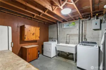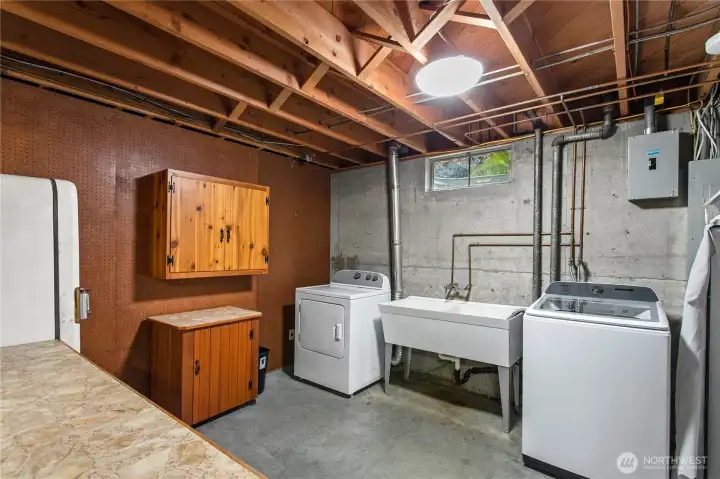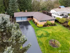 Tucked away in a super private setting, this contemporary mid-century gem blends timeless craftsmanship with thoughtful modern updates. Built in 1957, this home showcases quality you simply don’t find today—from solid wood doors to beautiful wood-framed windows. Offering over 2,900 square feet with 3 bedrooms, the main level features brand new LVT flooring, updated light fixtures, and a mini-split system for efficient comfort. The kitchen includes an eat bar and flows seamlessly into a spacious family room, perfect for everyday living and entertaining. A gas fireplace on the main adds warmth and charm. Downstairs, the expansive unfinished basement presents incredible opportunity—complete with a wood-burning fireplace, separate entrance, shop area, and abundant storage. With its own access and flexible layout, the basement offers strong potential for a separate living area, guest quarters, or multi-generational living. Major updates include a newer roof (just under 4 years old), upgraded electrical panel, new windows, and modern sprinkler systems in both the front and back yard. Ideally located off Pacific Highway, this property offers convenience while maintaining a peaceful, private feel. A rare opportunity to own a character-filled home with space, updates, and room to grow! Schedule your private showing today.