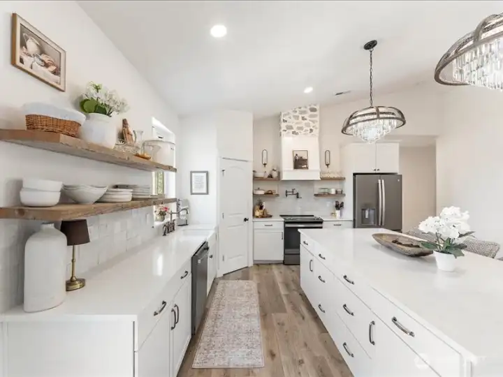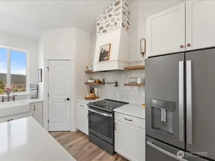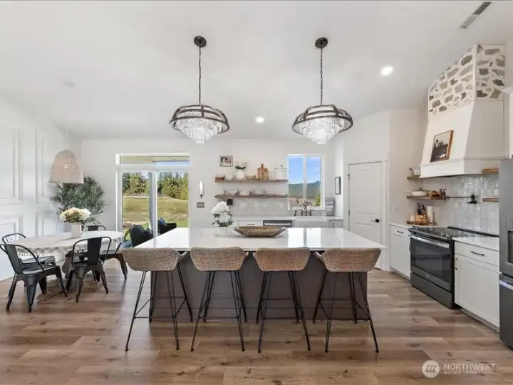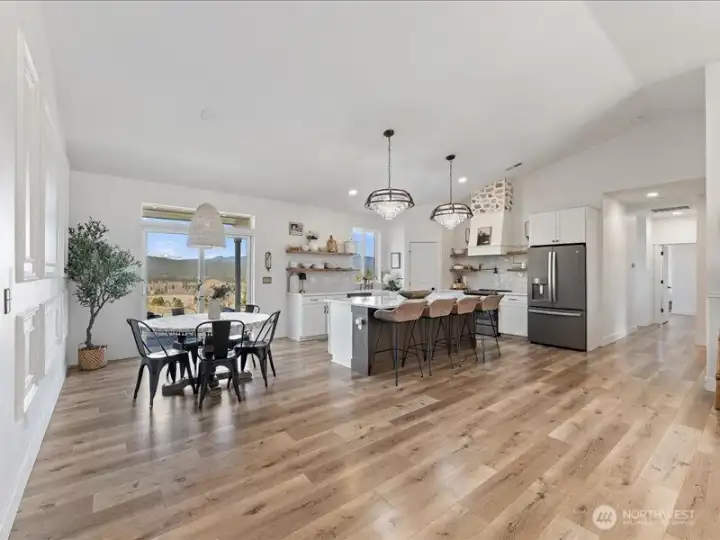 Panoramic views stretch across the Cle Elum Valley to the iconic Stuart Range, delivering a rare combination of privacy, open space, and unforgettable scenery. Set on just over half an acre in Dakota Heights, this SINGLE-STORY 4 bed, 2.5 bath cottage farmhouse style home offers 2,564 sq ft of thoughtfully designed living. Inside, the open-concept layout is filled with natural light and anchored by high vaulted ceilings, creating an airy and expansive feel. The kitchen, dining, and living areas come together seamlessly, ideal for gathering, entertaining, or simply enjoying a quiet evening in. Large windows frame the surrounding landscape, bringing the outdoors in. Warm finishes and inviting textures add charm, while a dedicated mudroom and two-car garage provide everyday functionality. The primary suite offers a peaceful retreat, while additional bedrooms provide flexibility for guests, work-from-home, or multi-generational living. Step outside to sweeping views, wide open skies, and fresh mountain air. Pristine turf landscaping offers a low-maintenance outdoor experience with space to relax, play, or entertain. A true Cle Elum lifestyle property with versatility for full-time living, a second home, or potential short-term rental. Ideally located just minutes to town, Suncadia, golf, hiking and biking trails, and year-round outdoor recreation.