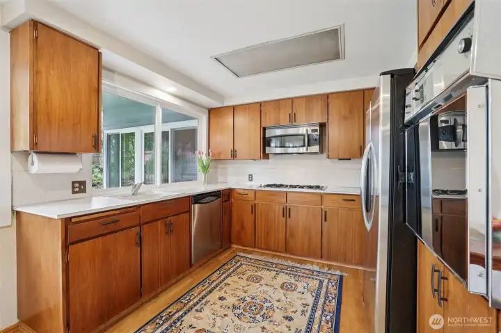 Welcome to a rare mid-century modern jewel in the heart of Bellevue. This 1966 architectural gem showcases signature design elements including vaulted ceilings, exposed beams, and a light-filled atrium that brings the outdoors in. Meticulously maintained over the years, the home reflects true pride of ownership and offers exceptional condition throughout. While largely original in style, it presents a rare opportunity for a mid-century enthusiast to polish a diamond or reimagine the space into a modern masterpiece. Set on a generous lot backing directly to a park, the property offers privacy, greenery, and open space rarely found this close to Downtown Bellevue. With no direct rear neighbors, the backyard feels peaceful and expansive—ideal for relaxing, entertaining, or creating your own retreat. Inside, the home features a functional layout with well-proportioned living spaces, abundant natural light, and strong architectural character. The design provides an ideal canvas for customization without compromising integrity. Located minutes from Downtown Bellevue, enjoy access to premier shopping, dining, parks, and major employers including Amazon, Microsoft, and Meta, plus easy access to I-405 and SR-520 and highly regarded Bellevue schools. Whether you're drawn to its architectural significance, move-in ready condition, or the chance to create something special, this is a standout offering in one of the Eastside’s most desirable locations.