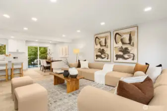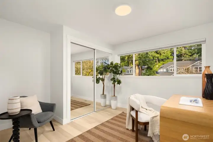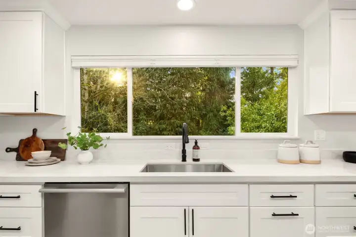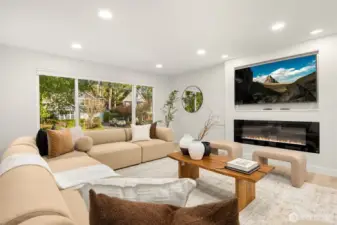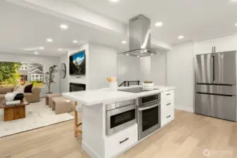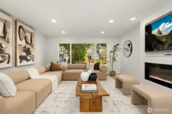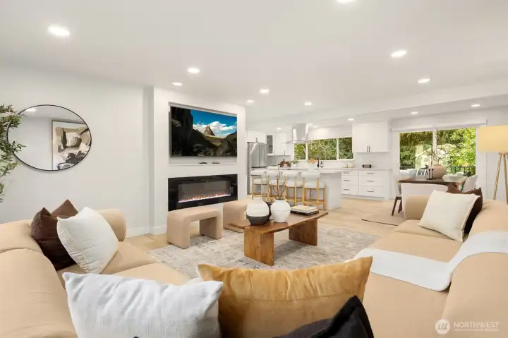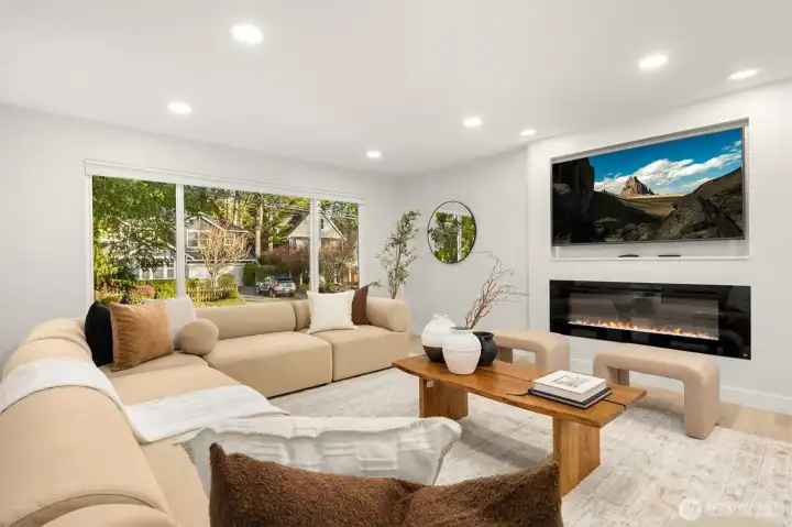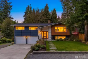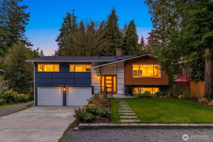 Tucked behind mature Pacific Northwest trees, this architecturally striking home stops you before you even reach the front door. Designer exterior lighting, clean lines, and a flawlessly manicured approach signal exactly the kind of finish and quality you’ll find throughout. Location on the island is 10/10. Walk to MIHS, Northwood, the library, and Ellis Pond. The open-concept main level is bathed in natural light & anchored by a showstopping chef’s kitchen featuring a large center island w/ cooktop, quartz countertops, white shaker cabinetry w/ matte black hardware, stainless appliances, and a statement range hood. The living room flows seamlessly from the kitchen & showcases a sleek linear fireplace, built-in TV niche + sliding glass door to the Trex deck overlooking a fully fenced, permitted for 2 on street parking spots, level backyard w/ sport court — perfect for year-round PNW living. Wide-plank LVP floors, recessed lighting, & curated designer touches create a warm, editorial aesthetic throughout. The fully permitted lower-level ADU features a private entrance, separate address, 2 bedrooms, full kitchen, & dedicated laundry — ideal for rental income, guests, or multigenerational living. An ideal location & situated on a 10,125 sq ft lot with RV parking, plenty of parking, a new roof, new concrete driveway, & easy access to Seattle, Bellevue, and Light Rail — this move-in ready 5-bedroom home truly has it all. Come experience the best of Mercer Island living.
