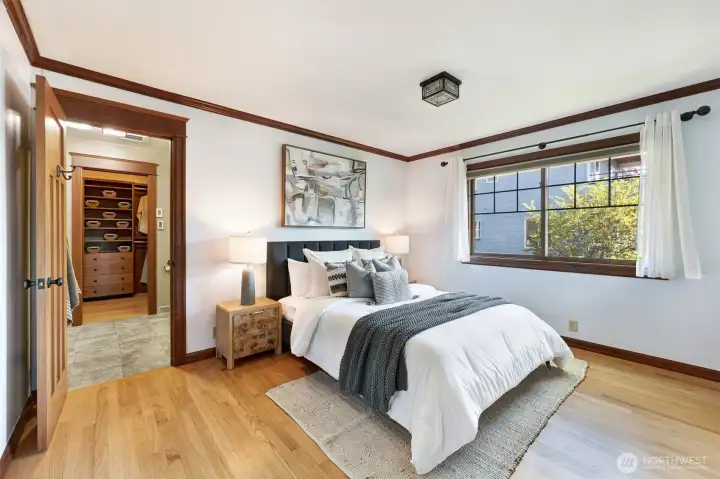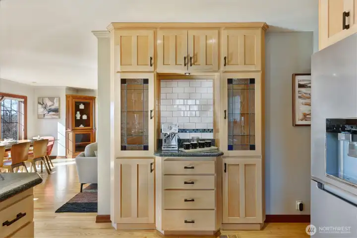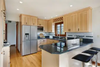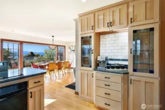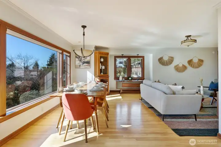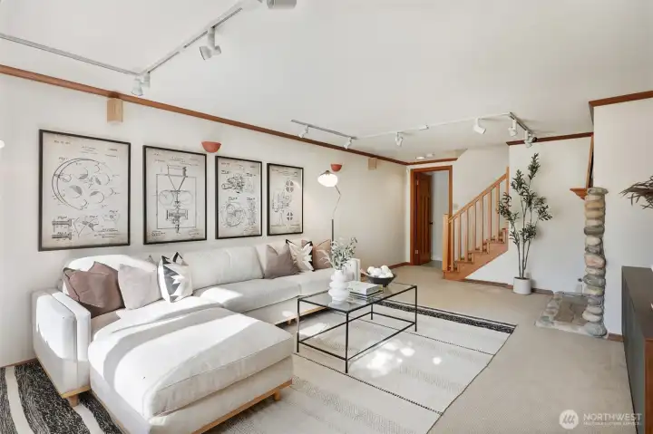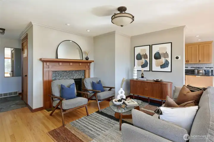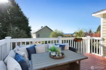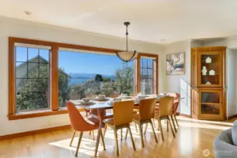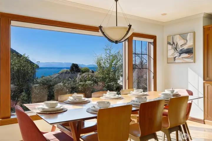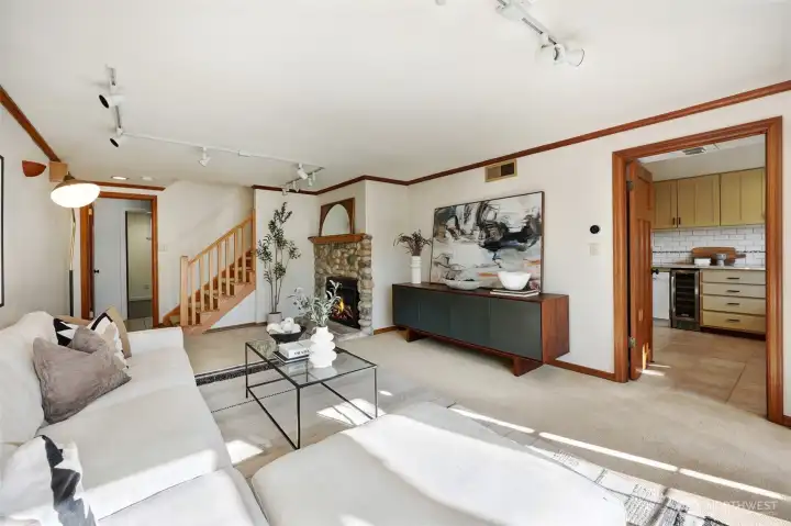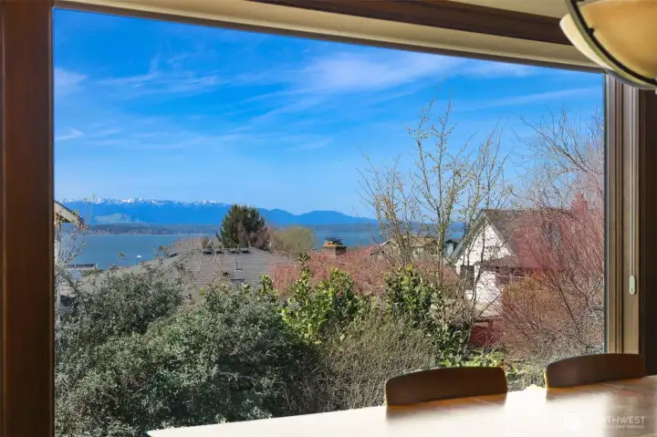 Fabulous Sunset Hill location on a quiet dead-end street. Take in fresh air and sweeping mountain and Sound views from this beautifully maintained home. Previously owned by a woodworker, the home showcases exceptional millwork and built-ins throughout, including custom cabinetry in the spacious primary suite walk-in closet. Set at the end of a long drive, the property offers both privacy and a sense of peaceful seclusion. The expansive 8,500 sq ft lot is a true retreat, featuring play areas, patio, mature plantings and still room for a vegetable garden. A second kitchen on the lower level provides excellent flexibility for multigenerational living or effortless entertaining, with direct access to the patio and garden—perfect for extending gatherings outdoors. The main level opens to a stunning west-facing deck, ideal for enjoying sunsets, morning coffee, or evening happy hour in this exceptional setting.