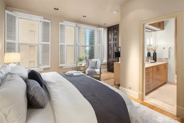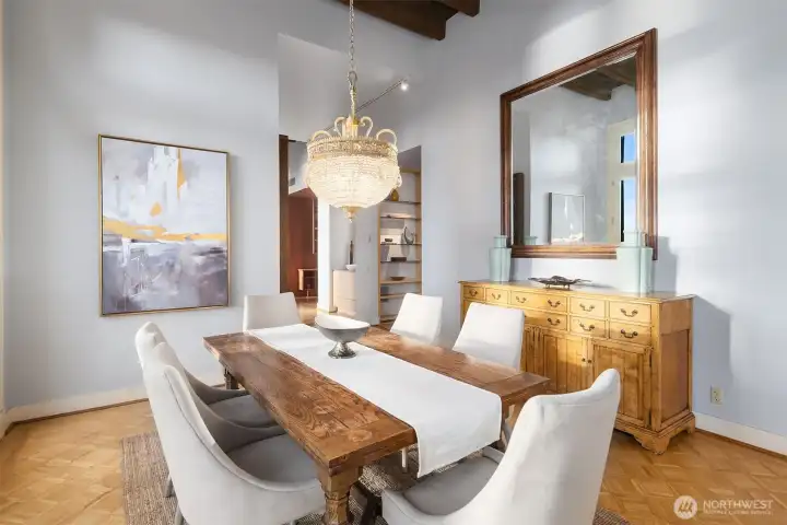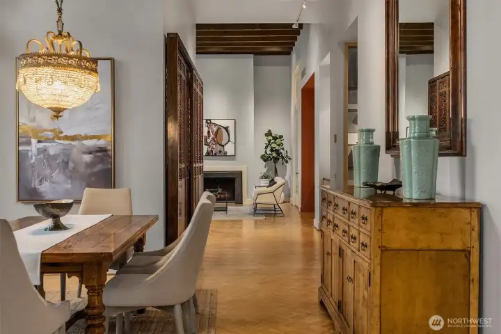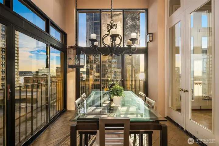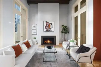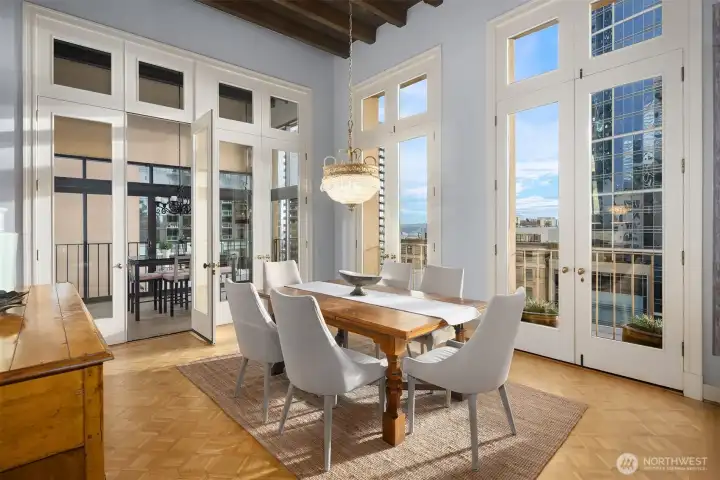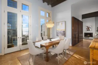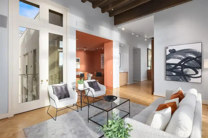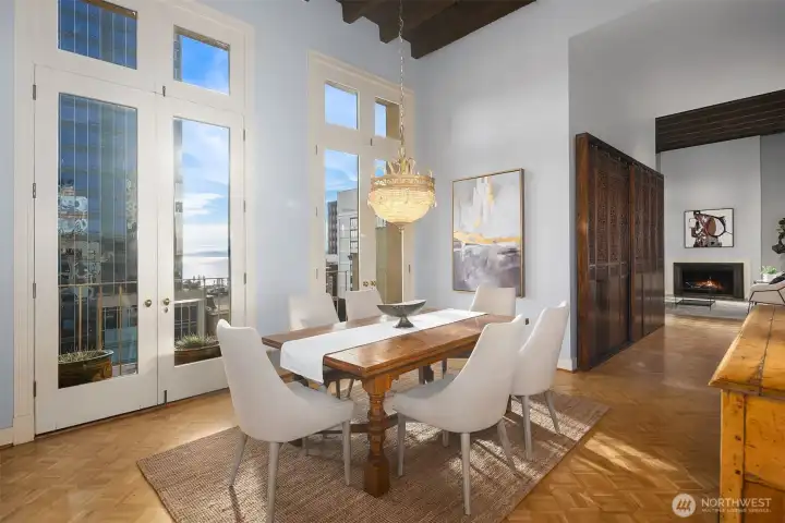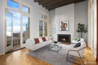 This remarkable penthouse was designed and personally owned by renowned Seattle architect Ralph Anderson, whose work helped shape the character of Pioneer Square and downtown Seattle. Experience a flawless blend of timeless elegance and old-world allure in this one-of-a-kind, full-floor residence. Spanning approximately 2,800 SQFT, this 3BD + den, 2.5BA home evokes the feel of a classic New York City flat, introduced by a formal gallery-style hallway—an ideal backdrop for an art collection. The chef’s kitchen anchors the home, while the inviting den offers a custom built-in lounge for relaxed living. An expansive formal dining room and adjoining sunroom create a refined setting for entertaining. The layout includes three generously sized bedrooms, two ensuite baths, a utility/laundry room, and a guest powder room. Additional highlights include three sets of French doors, soaring 15.5-foot ceilings, parquet flooring, and preserved original tilework. A rare opportunity exists to design a private rooftop terrace above (buyer to verify). Originally built in 1913, the Fischer Studio Building is a designated Seattle landmark showcasing Renaissance Revival architecture, terra cotta detailing, and grand marble staircases. Located just one block from Pike Place Market, this home offers unmatched walkability with dining, shopping, and the waterfront at your doorstep.