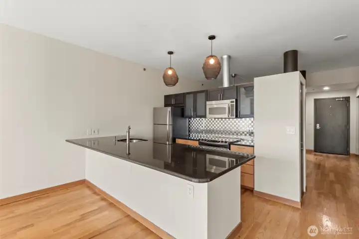 Commanding breathtaking views of Puget Sound from the coveted south-facing 10th-floor sub-penthouse, this residence captures a refined urban lifestyle framed by floor-to-ceiling windows and a stunning panorama of Mt. Rainier, passing ferries, and unforgettable sunsets.An open-concept living, dining, and kitchen layout is thoughtfully designed to showcase the water and mountain views at every turn, while the private balcony provides a front-row seat to shimmering city lights after dark.High-end finishes elevate the home throughout, including tilt-and-turn windows and doors, solid hardwood floors, soaring 10-foot ceilings, a contemporary chef’s kitchen, and a sleek, fully tiled modern bathroom.Residents enjoy a beautifully designed bi-level lobby with concierge service and access to premium amenities, including a fitness center, community room, business lounge, outdoor patio, and guest suite.Ideally located just steps from Olympic Sculpture Park, the revitalized waterfront, world-class dining, and Pike Place Market, this home offers the very best of Seattle at your doorstep. No rental cap—ideal for both homeowners and investors.