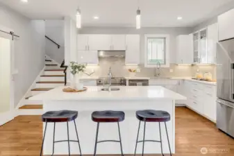 Stunning craftsman home perched high on the street and in mint condition, perfect for today’s lifestyle. Three bedrooms upstairs with laundry room, two full baths, and with a balcony and two closets off the generous primary bedroom. The main floor features an open floor plan with eat-in kitchen, pantry, dining and living area with fireplace plus separate formal office. Downstairs has two additional bedrooms, full bath, huge family room with fireplace and a second laundry room plus extra space for a gym. Over-sized two-car garage with electric car charger plus two additional off street parking spaces, gorgeous fenced-in yard and central A/C complete this amazing home. A stone’s throw to shopping, restaurants, cafes and Seattle’s biggest park-Discovery, tennis courts and one of the cities hidden gem playground. Less than 20 min to DT Seattle and South Lake Union. Must see in person!!