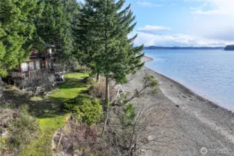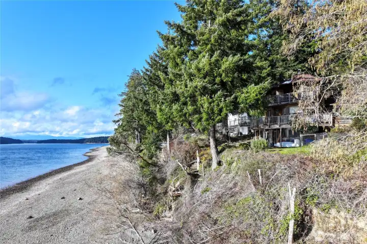 Welcome to your own slice of Pacific Northwest waterfront living on beautiful Harstine Island. This 3-bedroom, 2-bath home sits on nearly 4 acres across two parcels, offering 120 feet of private shoreline with breathtaking views of Squaxin Island and the Olympic Mountains. Spend your days soaking in the peaceful setting, watching boats pass by, and enjoying unforgettable sunsets from your own beach. Harvest clams and oysters, kayak the calm waters, or simply unwind and take in the natural beauty that surrounds you—this is true PNW living. The property also includes a gazebo and an upper shop with potential for an ADU, providing additional space and opportunity. This property is full of potential and ready for your vision. Bring your tool belt and restore it into a stunning waterfront retreat, full-time residence, or investment opportunity. A rare chance to own acreage, privacy, and waterfront all in one—don’t miss it.