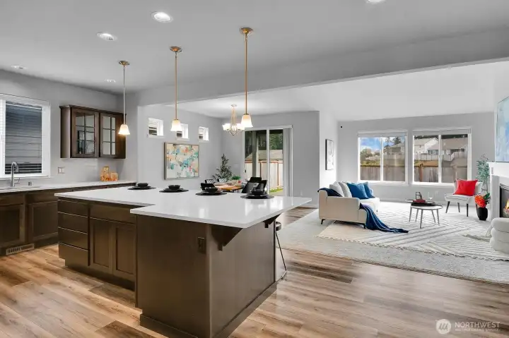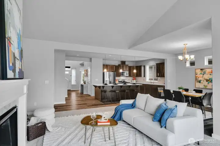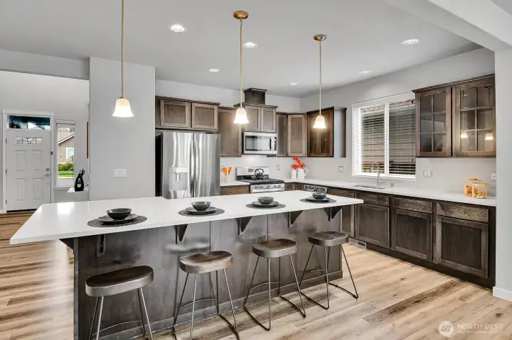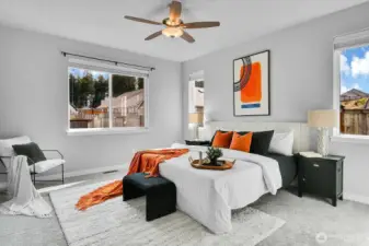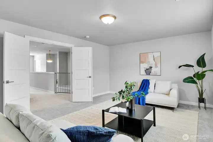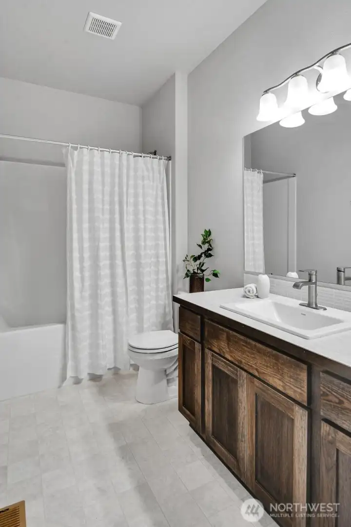 Beautiful Pine model in Steilacoom Ridge offering 2,457 sq ft of thoughtfully designed living space with a functional and open layout. The main level features a spacious primary suite with a luxurious 5-piece bath, along with two additional bedrooms—one ideal for a home office or flex space. Upstairs you’ll find a private 4th bedroom and a large bonus room perfect as a media room, game room, or play area. Enjoy quality finishes throughout including extensive hardwood flooring, rich beech cabinetry with full-extension soft-close drawers, and elegant white painted millwork. The covered back porch overlooks a huge, fully landscaped backyard with privacy fencing—ideal for outdoor entertaining, pets, or gatherings.All appliances stay, making this home truly move-in ready. Conveniently located just minutes from I-5, Hawk’s Prairie shopping, dining, and a quick commute to JBLM, this home offers comfort, space, and accessibility.