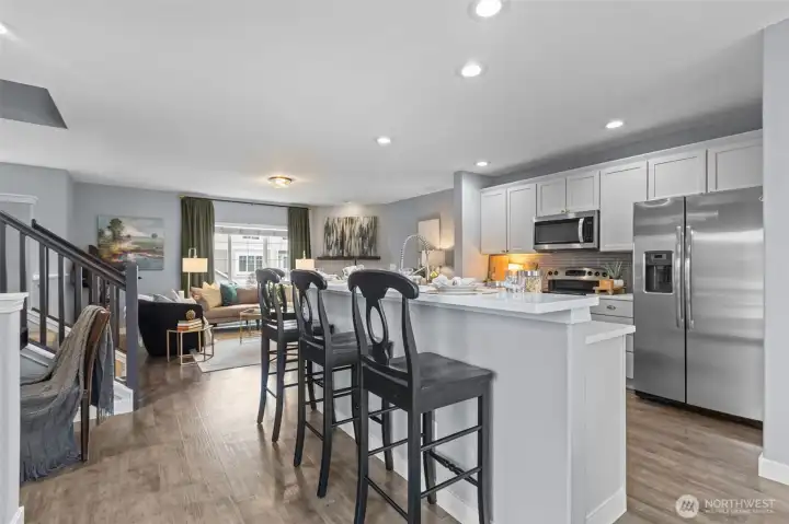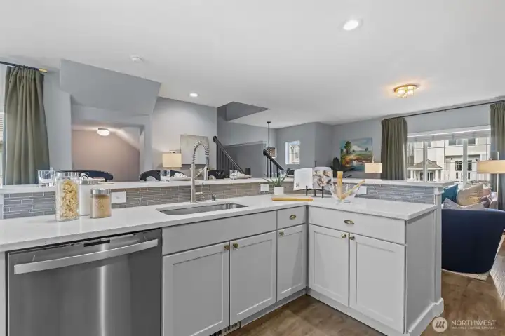 Stylish, updated, and move-in ready—this 2-bedroom, 2.5-bath townhome in the gated Stonebrook community has it all. Featuring LVP flooring and a light-filled open layout, the home boasts a modern kitchen and bathrooms with quartz countertops and stainless steel appliances, plus a beautifully remodeled gas fireplace that adds warmth and charm. Enjoy a private patio, and a two-car garage adds convenience. The upper level offers a spacious primary suite with dual sinks, a second bedroom, a guest bath, and walk-in closets. Custom built-in storage for added convenience. Perfectly located near Tacoma and Puyallup with quick access to I-5 and Hwy 167, this home combines comfort with convenience. Community perks include a sports court, playground, guest parking, and a peaceful setting on a quiet dead-end street close to parks and trails.