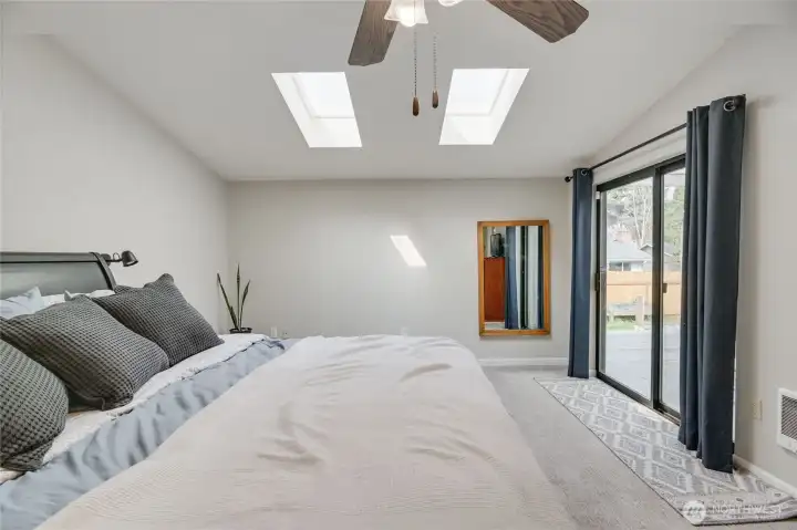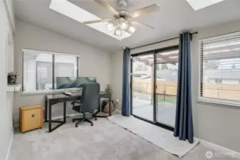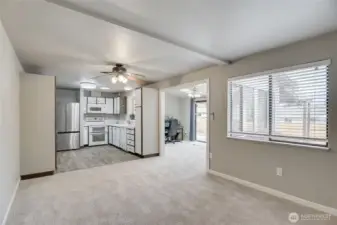 This westside 3 bedroom, 2 bathroom house offers a spacious and flexible living space. The home features an abundance of natural light throughout, creating a bright and airy atmosphere. The open layout includes a spacious living area with a fireplace, providing a comfortable gathering space. The kitchen is equipped with ample cabinetry, offering generous storage options. Adjacent to the kitchen, the large dining area seamlessly transitions to the bonus living area and covered patio, allowing for indoor-outdoor living. The primary bedroom features a walk-in closet and access to a private deck. The bathrooms are thoughtfully designed, with one serving as the en-suite for the primary bedroom. The home's exterior features a spacious lot with mature landscaping and a fenced yard, providing a private oasis. The property also offers RV parking, accommodating a variety of vehicles. Situated in a great neighborhood, this home is conveniently located for an easy commute. The home has been well-maintained, with updated carpeting throughout. The single-level floor plan offers overall comfort and accessibility of the space.