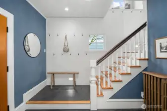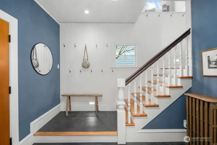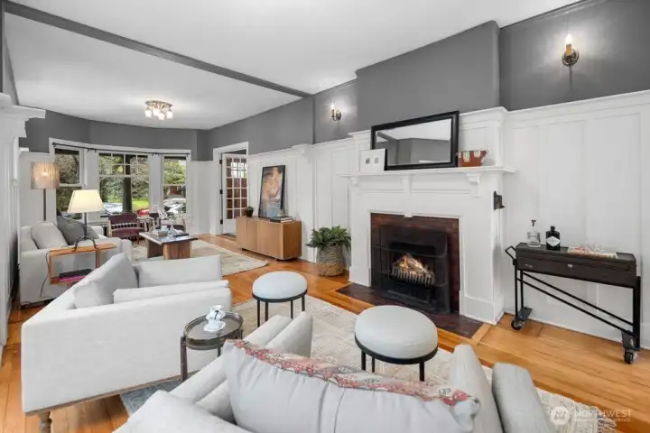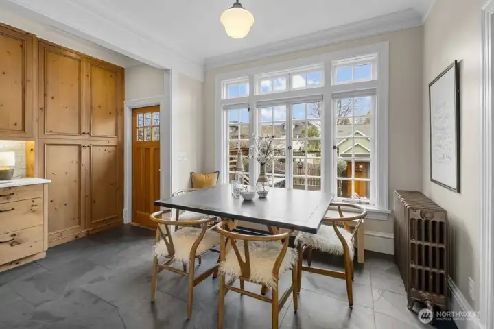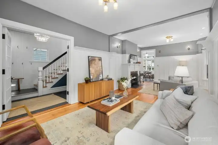 Elegantly reimagined for 21st Century living while retaining much of its 1906 charm, this North Capitol Hill Dutch Colonial is a true unicorn. Situated on a generously-sized, sunny and level lot on a quiet street, it's only a few blocks from schools, shops, and parks. The open and circular floor plan on the main level creates an easy, comfortable flow that feels entirely natural. The spacious living room runs most of the length of the house and is centered around the fireplace. It opens into the eat-in kitchen, with a double-wide refrigerator, Viking range, and abundant cabinet and counter space. The custom-built kitchen table and banquet seating create a welcoming space for both casual and formal dining, in addition to being a practical area for daily life. Speaking of practical, the laundry room and half bath round out the first floor. Upstairs there are four bedrooms, an office, and two updated bathrooms. All the bedrooms have generous closet space, including two with walk-ins. The primary has an en-suite with a tub. The hall bath has a large marble shower. Natural light flows into every room in the house through big windows. The kitchen opens onto the stunning deck, making it perfect for hosting friends. The large yard is made for dog zoomies, sports, or your gardening dreams. The re-imagined and expanded garage includes two parking spaces and a workshop area or 3 cars, plus an adjoining parking pad, Sprinter van ready!