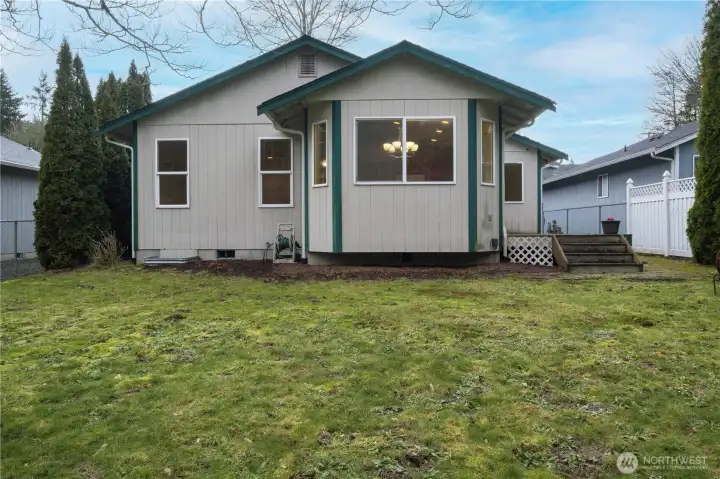 Welcome home to this charming Craftsman-style rambler tucked away on a quiet dead-end street in South Kitsap. Built in 2000, this well-maintained 3-bedroom, 1.75-bath home offers 1,270 sq ft of comfortable, single-level living on a level lot. Step inside to vaulted ceilings and a light-filled layout that creates an open, airy feel throughout the main living spaces. The kitchen features ample cabinetry, a functional layout with eating space, and seamless flow into the dining and living areas—perfect for everyday living and entertaining. French doors lead to a back deck overlooking a spacious yard with room to garden, play, or relax. The primary suite includes a private bath, while two additional bedrooms offer flexibility for guests, home office, or hobbies. Additional highlights include double-pane windows, ceiling fans, forced air heating, and an attached 2-car garage with extra driveway parking. Conveniently located near local amenities, schools, and commuter routes! This move-in ready home is ready for you to make it your own, and offers the perfect blend of comfort, functionality, and location.