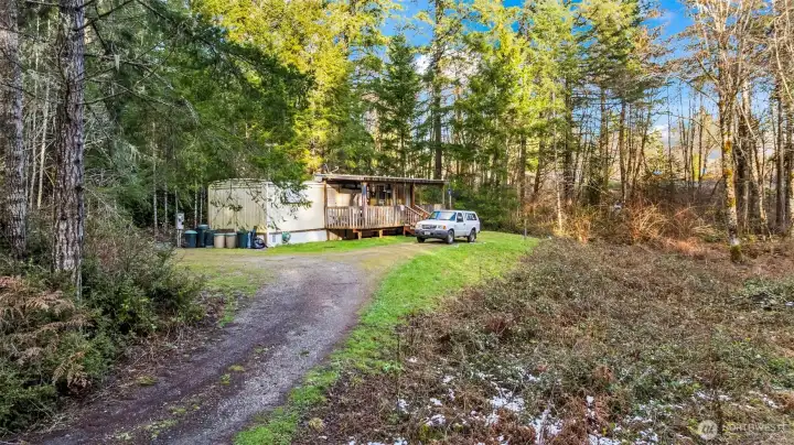 5 private acres with a 4-bedroom septic system already installed, offering incredible potential for future plans. Tucked away among towering evergreens, this peaceful property provides the privacy and natural beauty of the Pacific Northwest while still being within reach of nearby amenities. The property features an existing manufactured home accessed by a private driveway and surrounded by mature trees, creating a quiet and secluded setting. With a larger septic system already in place, the groundwork is set for a variety of possibilities—whether you're looking to renovate, build, invest, or create your own private retreat. Enjoy the space, serenity, and opportunity that come with owning acreage in such a beautiful setting. Bring your vision and explore the possibilities this unique property has to offer.