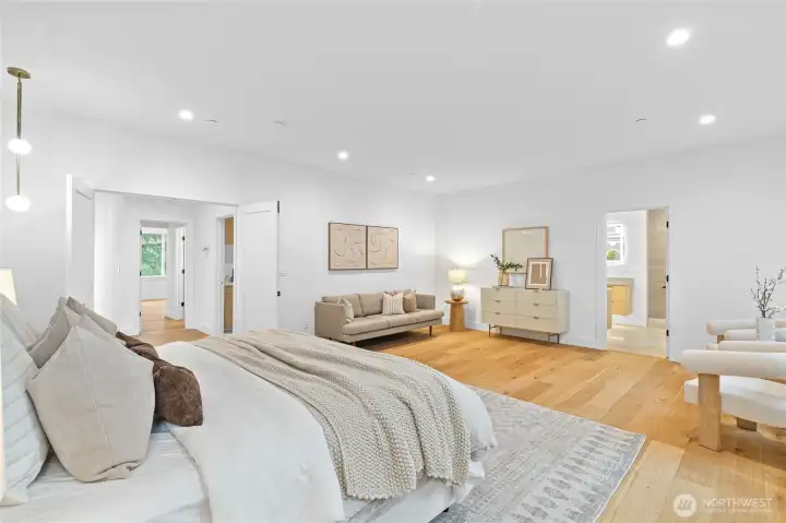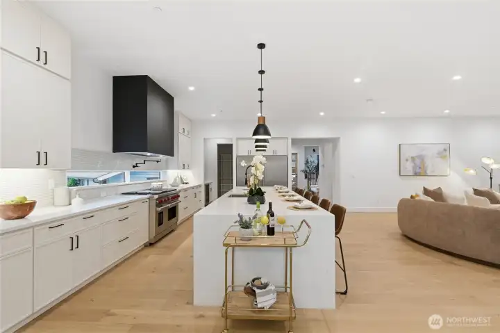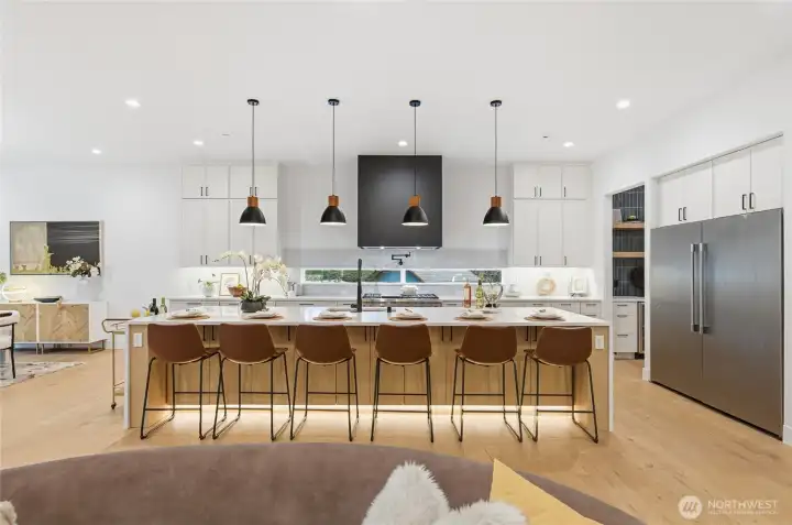 The home everyone's been waiting for is finally complete along with a NEW PRICE! Discover refined luxury in this brand-new transitional modern estate by acclaimed local builder Specialty Design+Build. This meticulously crafted 5-bedroom plus office, 4.5-bath residence spans 4,190 SF on a generous 13,082 SF flat lot, featuring an exceptionally rare 950 SF four-car garage. Step through the entry into soaring ceilings and thoughtfully designed living spaces including a dedicated main-floor office and guest suite with private ensuite. The chef's kitchen is the heart of the home, showcasing a dramatic 13-foot island, professional-grade 48" Wolf gas range, and 60" built-in refrigerator—a true entertainer's dream. Retire to your expansive primary suite featuring a spa-inspired ensuite bath and an extraordinary custom walk-in closet (bedroom-sized!) with convenient direct laundry access. The dedicated wing upstairs offers two bedrooms sharing a versatile play room and ensuite bath. Seamlessly extend your entertaining to the spacious covered porch and generous backyard with multiple activity zones. Premium finishes throughout include wide plank engineering hardwood throughout the home (no carpet!), level 5 smooth drywall, heated bathroom floors, designer tile and custom millwork. Unbeatable Central Bellevue location with effortless access to parks and recreation, major freeways, premier shopping, leading tech campuses, and everything the Eastside has to offer.