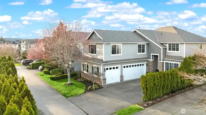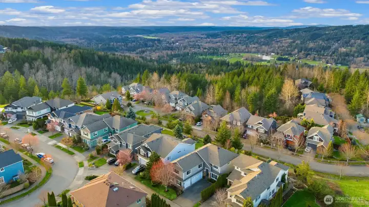Located in the highly sought-after Snoqualmie Ridge community, just moments from the golf course, this home puts lifestyle, panoramic mountain & valley views, and convenience right at your doorstep. Beautifully updated 4-bedroom home with a spacious bonus room, designed for both comfort and style. Step through the impressive new 8’ entry door into soaring ceilings and light-filled formal living spaces, complete with a versatile office/den. The fully remodeled kitchen shines with white cabinetry, slab quartz countertops, and a seamless flow into the main living areas, all anchored by rich hardwood floors. Modern touches like designer shiplap accents bring a fresh, on trend feel buyers love. Enjoy mountain views from the expanded stamped concrete patio, featuring a tranquil water feature, perfect for entertaining or unwinding at the end of the day. Additional highlights include A/C, a new furnace, and a 3-car garage for added convenience. Move-in ready with thoughtful updates throughout. Fantastic Snoqualmie Valley Top Rated Schools! This one check all the boxes.