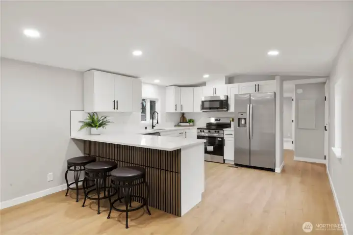 Welcome to this beautifully remodeled home offering open, light-filled living space with a clean, contemporary feel throughout. Every detail has been thoughtfully updated from new flooring and fresh interior and exterior paint to the refreshed kitchen and bathrooms creating a truly move-in ready opportunity.The open layout provides seamless flow for entertaining and everyday living. Step outside to enjoy the covered deck perfect for year round gatherings, relaxing mornings, or unwinding in the evenings. The generous lot provides additional space to enjoy the outdoors. Conveniently located near schools, shopping, and amenities. Don't miss this one!