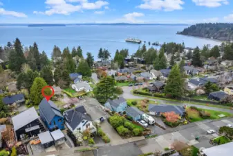 Modern PNW-inspired new construction showcasing clean lines, natural finishes, and breathtaking western views of the Puget Sound and Olympic Mountains. Architectural simplicity is softened by warm, organic elements—white oak engineered flooring, custom locally crafted cabinetry, bespoke metalwork, and reclaimed wood from the original home thoughtfully woven throughout. The heart of the home is an artfully designed chef’s kitchen, anchored by a generous island, high-end appliances, and a walk-in pantry—ideal for gathering, cooking, and connection. The open main level flows seamlessly to a sunlit deck, where sweeping views of Vashon Island, Southworth ferryboats, and golden sunsets become part of your daily rhythm. A main-level bedroom and bath offer flexibility for guests, work, or a quiet retreat. Upstairs, 3 bedrooms and 3 baths provide easy separation, including a stunning primary suite with spa-like bath, custom walk-in closet, and incredible sunset views. The lower-level studio with private patio offers endless possibilities—media lounge, guest quarters, multigenerational living, or income-producing retreat. Complete with a covered carport and fresh landscaping, this home is ideally located minutes from the Fauntleroy Ferry, Lincoln Park, and neighborhood restaurants and coffee shops—an exceptional opportunity in one of West Seattle’s most desirable pockets. A rare blend of modern design and natural beauty. Main entrance on 46th SW; please park and enter on 46th SW.