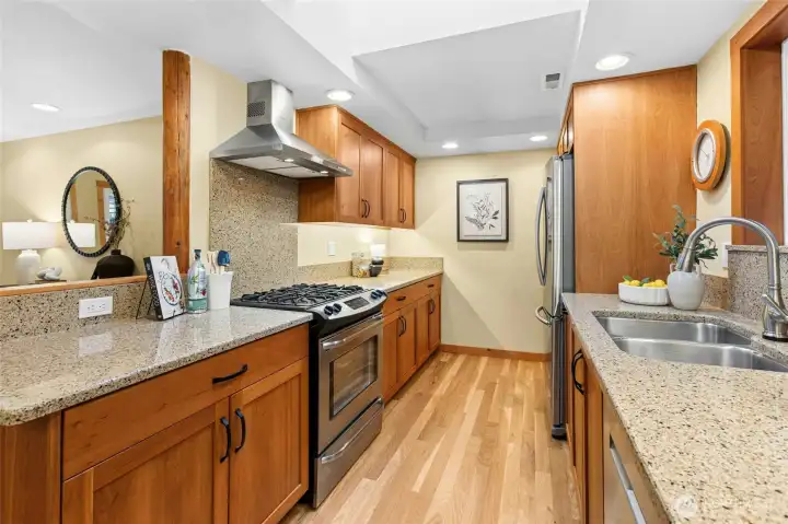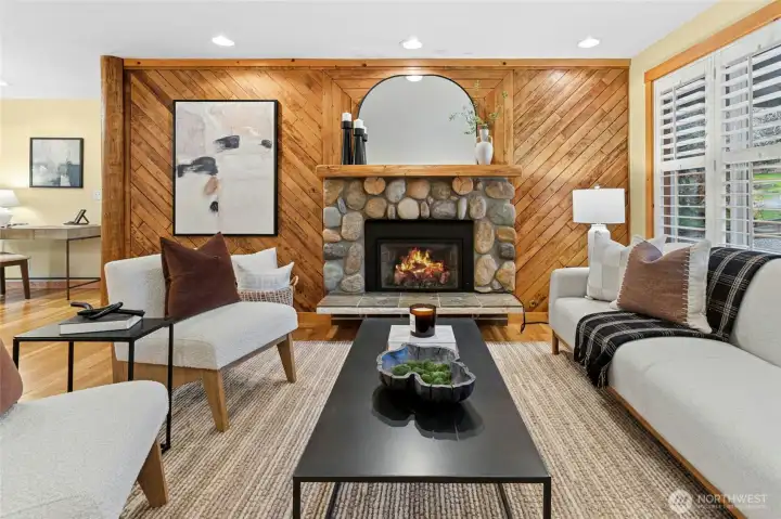 Storybook cedar home with stunning garden oasis & detached shop in sought-after Cottage Lake—where charm, updates, and lifestyle come together. A blooming wisteria frames the darling covered front porch, surrounded by fruit trees and berries for a warm welcome. Inside, this inviting 3-bedroom, 2-bath home features real oak hardwood floors, a cozy gas river rock fireplace with custom cedar accent wall, and a beautifully updated kitchen (2019) with cherry cabinetry, quartz counters, undercabinet lighting, and updated appliances. The expanded and remodeled hall bath adds comfort and style. A sun-filled dining/sunroom addition opens to a large deck overlooking the private, fully fenced backyard with raised beds and greenhouse—perfect for summer evenings. Large shop with heated office/gym offers flexible space. Close to Cottage Lake Park, top Northshore School District schools, and minutes to Woodinville Wine Country—don’t miss this turnkey home.