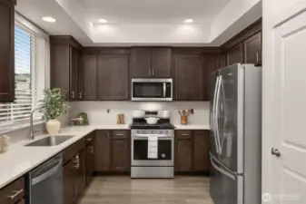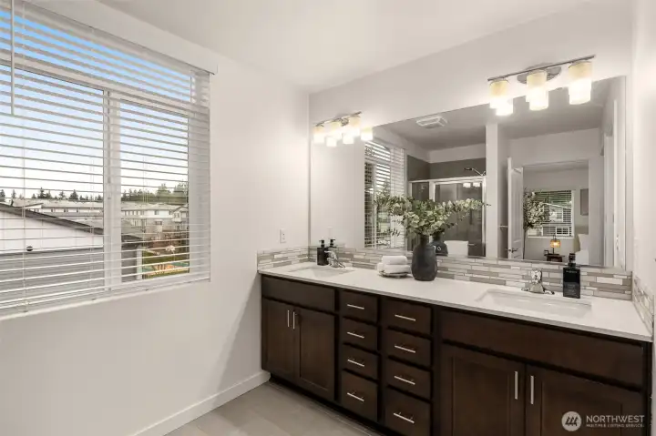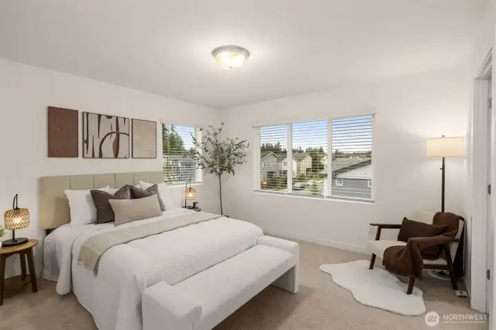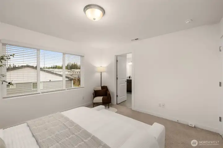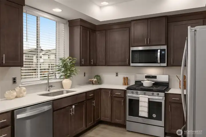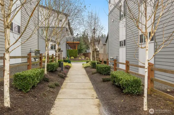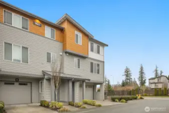 Light-filled and thoughtfully designed, this corner-unit townhome in the desirable Central Park community offers modern comfort with added privacy and extra windows throughout. Fresh interior paint and clean, contemporary finishes create a bright and welcoming feel from the moment you walk in.The main level offers a seamless, open-concept layout that balances comfort and functionality, featuring durable laminate hardwoods and a well-appointed kitchen with quartz countertops, stainless steel appliances, and a generous pantry. Step out to the deck and adjoining yard space, ideal for morning coffee, unwinding, or casual get-togethers.Upstairs, the primary suite offers a comfortable retreat, complemented by two additional bedrooms and a full bath—perfect for guests, work-from-home needs, or growing households. The fully finished tandem 2-car garage adds valuable flexibility, whether you need extra storage, a workout area, or a creative space.Set just steps from the community park and conveniently located near everyday essentials, dining, and commuter routes, with access to highly regarded Northshore schools including Fernwood Elementary and Northshore High School.