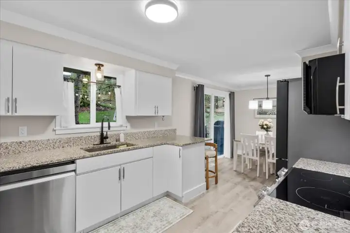Welcome to the highly sought-after Echo Lake community. Situated on a private corner lot, this fully fenced one-acre property is accessed through grand metal gates and features a beautifully remodeled rambler offering 3 bedrooms, 1.5 bathrooms, 1,416 square feet, and thoughtfully curated modern upgrades throughout.The updated kitchen showcases elegant granite countertops and one-year-old stainless steel appliances, including a flex oven and induction range. The home offers a bright, open living room that flows seamlessly into a spacious family room, complete with a dry bar and a generously sized office—ideal for both everyday living and entertaining. A convenient mudroom off the garage enhances everyday functionality.Enjoy cozy winter evenings by the fireplace, and take full advantage of the expansive yard and stunning back deck—perfect for entertaining during the summer months.Recent improvements include a brand-new roof, new double-pane storm windows, a high-efficiency heat pump, smart electrical panel, EV charger, and CAT6a Ethernet wiring. The property also offers ample space, RV parking, and upper driveway access for easy pull-through. Located within top-rated schools and offering convenient access to shopping, restaurants, wineries, and outdoor recreation—including golf at Echo Falls Golf Course and nearby hiking—this home also provides a quick commute to Bellevue and Seattle. This home offers the ideal blend of comfort, convenience, and modern living. Don't miss it!