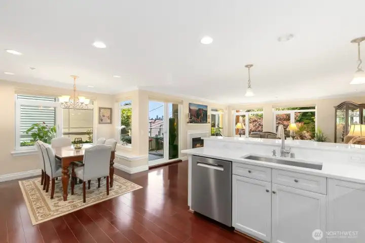 Presenting a rarely available 1,474 sq ft condominium situated in the heart of Magnolia, combining the spaciousness and comfort of a traditional home with the convenience of condominium living. This meticulously designed unit boasts an expansive layout, offering generous living and dining areas suited for both daily use and entertaining guests. Abundant natural light streams through large windows, enhancing the bright and welcoming ambiance. Gourmet kitchen is tailored for entertaining and features quartz countertops with tile backsplashes, stainless steel appliances with a gas cooktop, and seamlessly connects to the living and dining rooms, as well as a covered southeast-facing deck with city views. The primary suite is equipped with a luxurious bathroom and a walk-in closet with built-in storage. The second bedroom is complemented by a full bath with tile accents. Both pantry and laundry rooms are spacious and include built-ins. Two-car garage parking with storage locker. 1,474 sq ft – exceptional for condos at this price point. Spacious, functional layout reminiscent of a single-family home. Quiet Magnolia location. Seize the opportunity to acquire a sizable, move-in-ready home in one of Seattle’s most sought-after neighborhoods. Conveniently located to Magnolia Village, Amazon, Expedia, South Lake Union, Discovery Park, and Downtown Seattle.