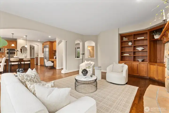 Welcome to this meticulously maintained 5,470 sq ft residence in Sterling Woods, a quiet Sammamish neighborhood near Sahalee. Light-filled and freshly painted inside, this home offers 6 bedrooms, 4.5 baths and stunning Lake Sammamish views.Grand yet welcoming, the main level features dual staircases, a formal living room with fireplace, a private dining room, a den with closet, and wood floors throughout. The kitchen is the heart of the home—with abundant cabinetry, premium stainless appliances, a double oven and a large island that opens to a cozy family room with a fireplace.Upstairs you’ll find generous bedrooms and a flexible bonus room—ideal for guests, a home office or multi-generational living. The primary suite is a tranquil retreat with the view of the lake and a spa-inspired bathroom and ample closet space. The lower level adds a media room, recreation room and an additional bedroom/office for flexible use.Outside, a private backyard backing to a greenbelt offers peaceful outdoor living, perfect for relaxing, gardening or entertaining. Located close to parks, top-rated Lake Washington schools and daily conveniences, this home blends tranquility with easy access to amenities. Don’t miss your chance to own in one of Sammamish’s most desirable communities.