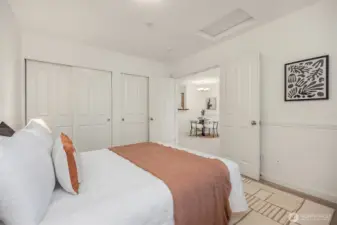 Perched on the top floor in the heart of Bainbridge Island, this light-filled 1-bedroom condo offers a rare blend of privacy, comfort, and convenience. Enjoy a quiet, peaceful setting and walk to shops, restaurants, transit, and the ferry. Fresh interior paint, new carpet, and updated laminate flooring in the kitchen create a clean, move-in-ready feel. The open-concept design connects the living, dining, and kitchen spaces seamlessly, while soaring ceilings and expansive windows bring in abundant natural light. Secure entry, elevator access, dedicated parking, and pet-friendly living complete the package, perfect for commuters, investors, or those seeking an easy island lifestyle.
