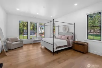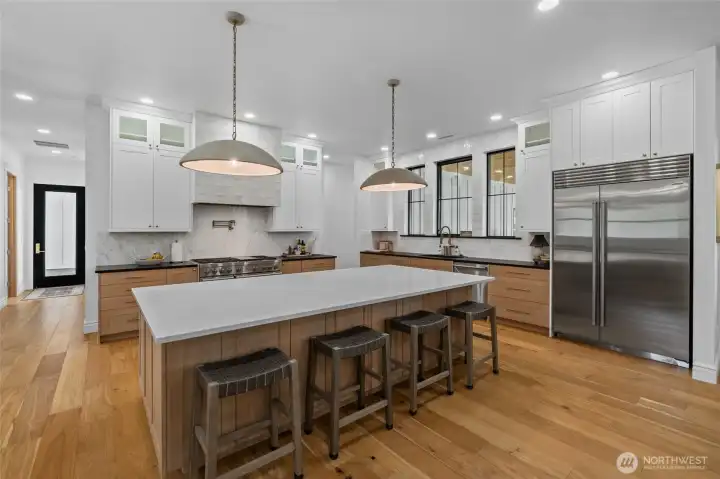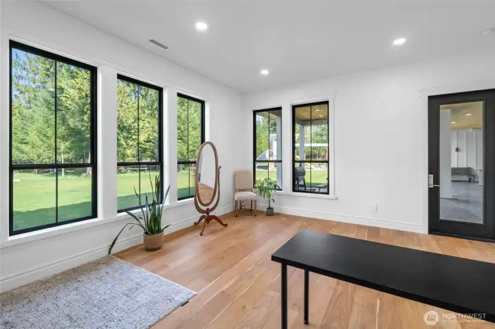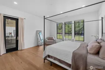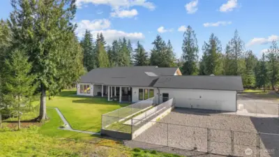 4,124SF custom home on 10+ acres of level, usable land offering exceptional privacy and high-end Pacific Northwest living. This meticulously designed 4bed, 4.5bath estate features 3 ensuite bedrooms, expansive living spaces, and premium finishes throughout including white oak engineered hardwoods, custom cabinetry, quartz counters, marble accents, and Pella window/doors. Chef's kitchen showcases Wolf range, Sub-Zero fridge, GE Monogram appliances, butler's pantry, and quiet vented hood system. Primary suite includes heated floors, Carrera marble, and custom his/hers closets. Enjoy seamless indoor-outdoor living with 1,300SF covered patio, outdoor kitchen rough-ins, stamped concrete, irrigation, and landscaped grounds. Home features 320amp service, 2-zone heat pump w/AC, HRV system, 26kW Generac generator, and 1,000gal. propane tank. Detached luxury shop w/220amp power, RV hookups/dump, polished slab floors, kennel, wood stove, and full bath. Attached gym features sauna, terrazzo floors, Sonos audio, and glass floor. ADU permit nearing approval for a thoughtfully designed residence with attached garage, configured as a 1bd plus two additional finished bonus rooms (ideal for office, fitness, or creative space), offering flexible multi-room living. Site plan outlines future ADU placement. Additional security system, water filtration, high-volume well, and extensive exterior lighting. Rare turnkey estate with exceptional craftmanship and future expansion potential.