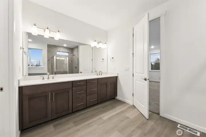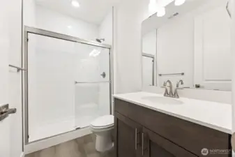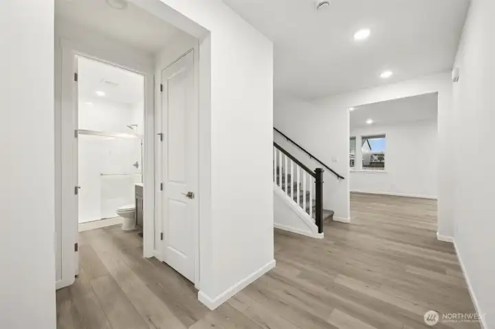 Beautiful Contemporary Andrea plan w/3 Car Garage, featuring a bed on main which you can conveniently option as a study with a 3/4 bath and walk-in shower, perfect for guests. Beyond the entry, a great room w/ a cozy fireplace flows into a gourmet kitchen with a massive walk-in pantry, built in tech center office space, and adjacent mudroom. Kitchen has an expansive quartz island and opens to an elegant, light filled dining room w/access to a large, covered patio perfect for entertaining! Second floor offers a huge open loft, full bath, utility room w/ cabinetry and linen closet for extra storage, and two additional bedrooms, and large primary suite and spa-like bath leads you to an oversized walk-in closet. ASK ABOUT OUR SPECIAL FINANCING!!
