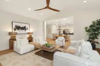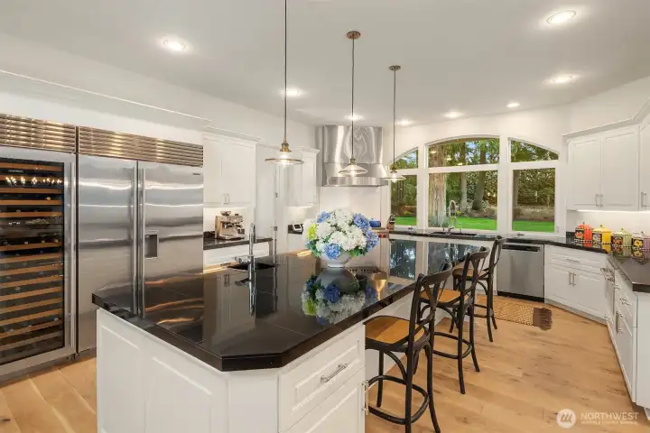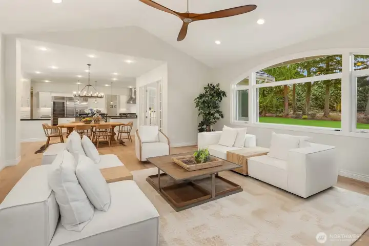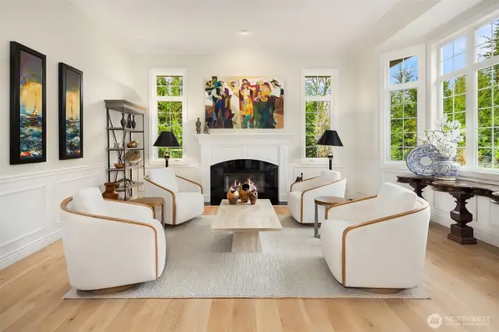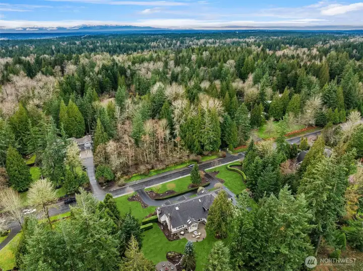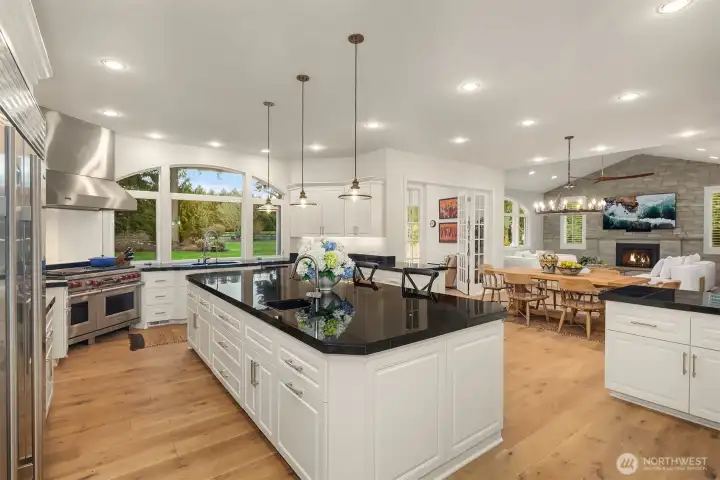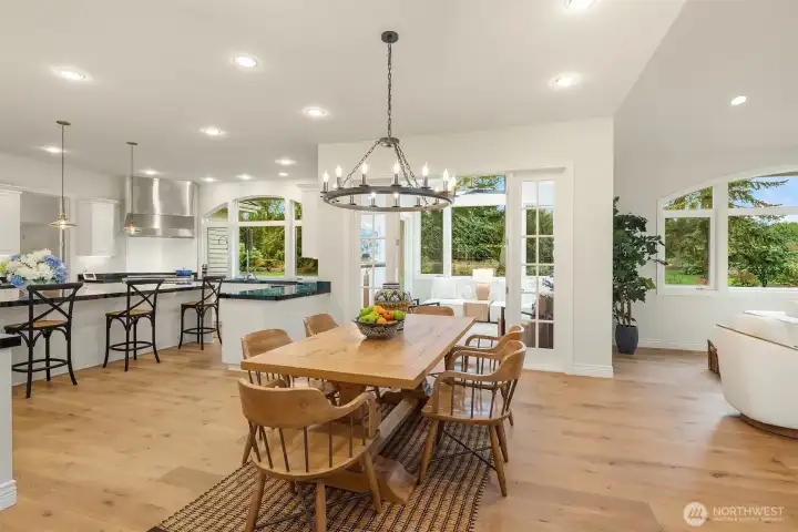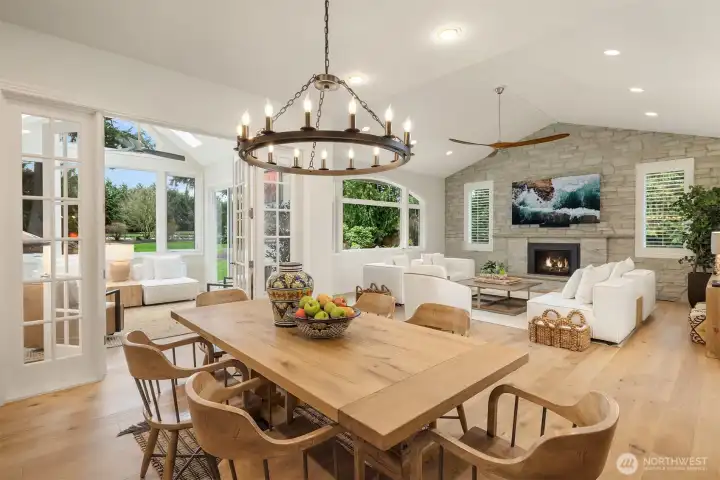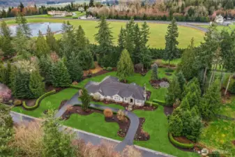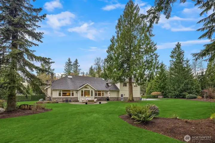A Bucolic Retreat of Privacy and Design. Luxury Living in The Woodlands. Tucked within the gated Woodlands community, this exceptional 4,640 sq ft residence offers privacy, scale and refined Northwest living on over two beautifully level acres. The home is surrounded by pastoral views and lush, professionally landscaped grounds with lighting and a fire pit gathering area, creating a peaceful, park-like setting. Ideally positioned at the end of the neighborhood and bordering the renowned Pegasus equine facility, the property blends quiet seclusion with convenient access to Redmond amenities, top-rated schools and the tech corridor. Inside, an open-concept design showcases quality construction, generous proportions and an easy, flowing layout. Brand new engineered hardwood floors and fresh interior paint create a crisp, updated aesthetic, while expansive windows invite natural light and frame the surrounding landscape. The updated kitchen features refinished cabinetry, Sub-Zero and Wolf appliances, generous prep space and seamless connection to the dining and great room with a striking floor-to-ceiling stone feature wall and adjoining solarium for year-round enjoyment. Main-level living is highlighted by a spacious primary suite and office or guest room, while the upper level offers two bedrooms, a full bath and a versatile bonus room for guests, media or recreation. Plus a rare 4 car garage. Offering rare accessibility while preserving a sense of quiet seclusion and privacy.