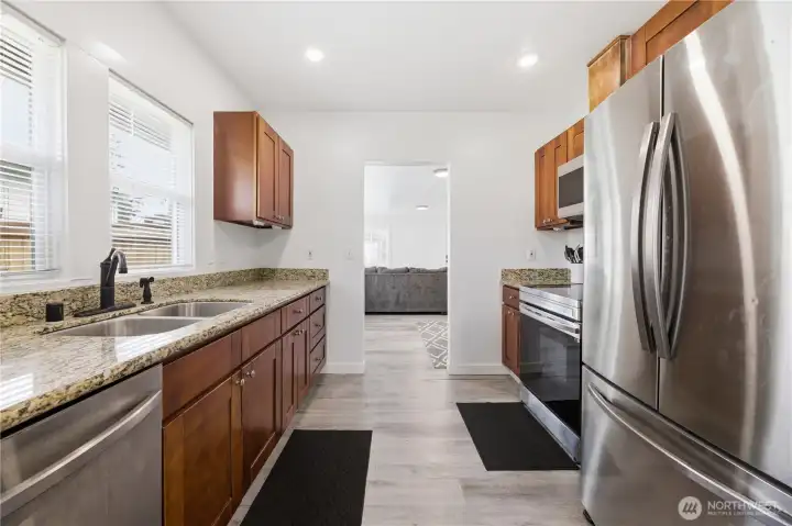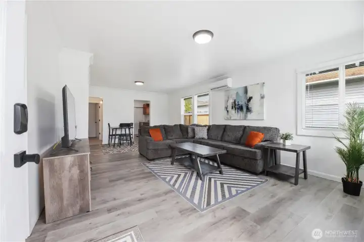 Welcome to this lovely 3 bed/1 bath home! Move-in ready and thoughtfully updated, this home features updated flooring in the main living areas and carpet in the bedrooms for a more cozy feel. The bathroom has been fully renovated, and the kitchen is equipped with upgraded appliances for everyday convenience. Stay comfortable year-round with a ductless AC heat pump, offering efficient heating and cooling. Outside, enjoy the added privacy of a newly installed fence, creating a great space perfect for relaxing or entertaining. This home is ready for its next owner. Great location! Close to I-5, shopping, and everyday conveniences. Come see today!