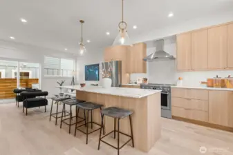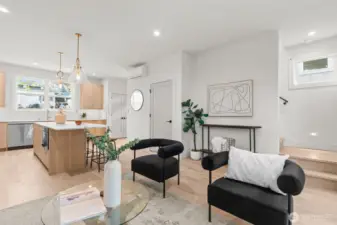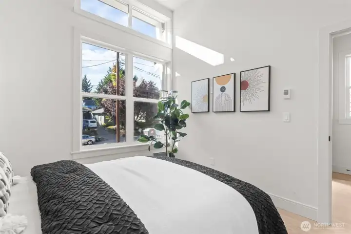 Nestled just steps from Loyal Heights Playfield, this charming 2 bed, 1.5 bath home welcomes you with warmth, light, and thoughtful design. The open-concept main floor features a stunning chef’s kitchen with a 36" range, oversized island, and elegant finishes—perfect for cooking, entertaining, or simply gathering with friends. Natural light pours through large windows, enhancing the bright, airy feel throughout. Upstairs, vaulted ceilings add space and serenity to both bedrooms. A cozy deck invites moments of relaxation year-round. With dedicated parking, 1,066 sq ft of smartly used space, and proximity to Ballard’s favorite coffee shops, restaurants and parks, this home blends modern comfort with neighborhood charm.