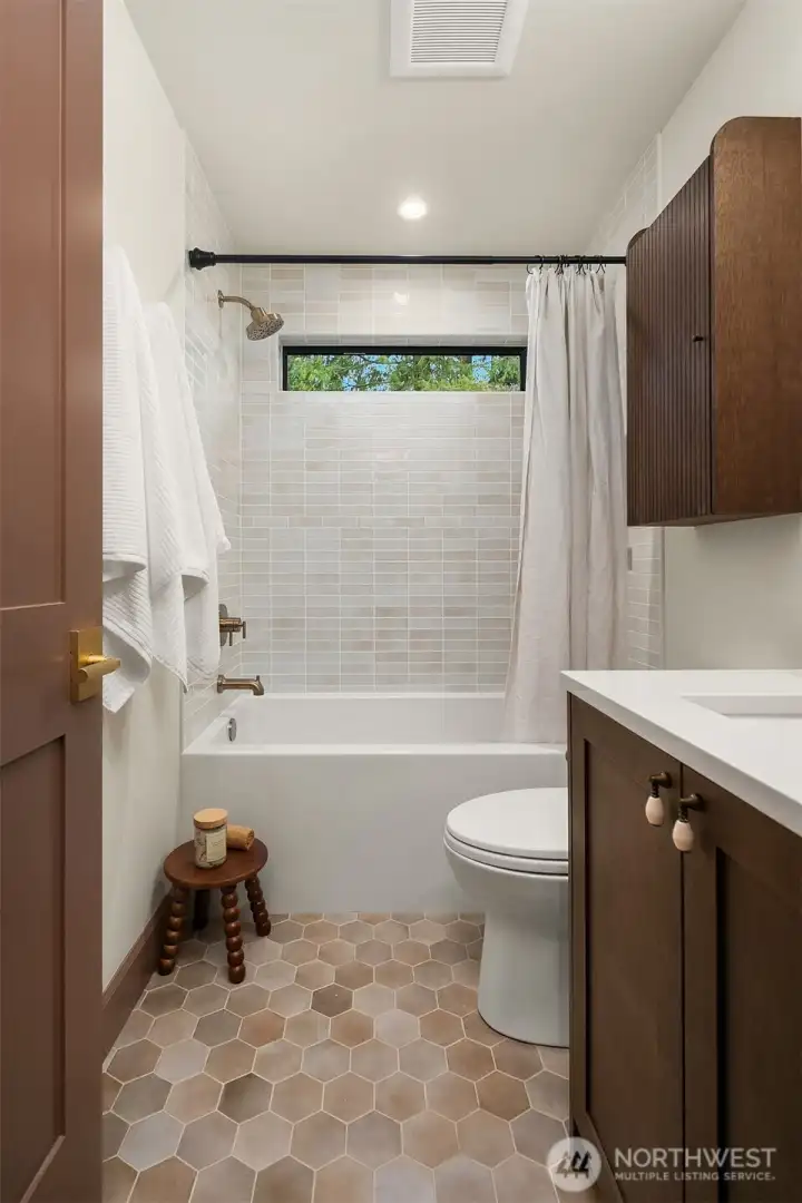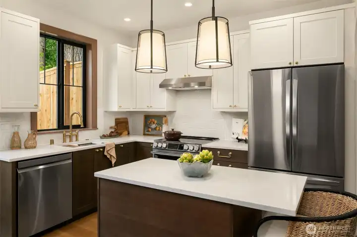 A rare Edmonds new build with the feel and finish of a custom home. Thoughtfully designed by Westerly, this 2-bed + den, 1,078 SF residence stands apart with timeless materials, curated details, and a level of craftsmanship rarely found in new homes today. The open main level is anchored by a statement kitchen featuring Bellmont cabinetry, warm wood lowers + ivory uppers, Zellige tile backsplash, prep island with built-in microwave, walk-in pantry, and a built-in banquette with furniture-style millwork. Rich millwork, wide-plank oak hardwoods, oversized grille windows, designer lighting, and living-finish hardware that patinas beautifully over time create warmth and character throughout. Upstairs, both bedrooms feature vaulted ceilings, while the den offers flexible space for a nursery or home office. Distinctive baths, mini-splits, mudroom nook, hidden bookcase door to mechanicals, heated 1-car garage with room for storage or gym setup, EV-ready wiring, and a fully fenced turf backyard complete this truly special offering. A beautifully executed, design-forward home in one of Edmonds’ most desirable settings.