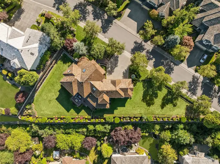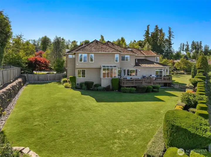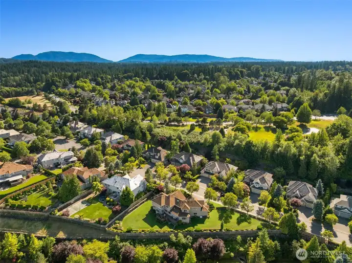 Commanding panoramic & breathtaking 180-degree views of the Cascade Mountains from nearly every room, this truly rare, 0.55-acre estate occupies what is often recognized as the most desirable position within Aldarra Estates. It offers premier placement, expansive grounds, and convenient access to Bellevue & downtown Seattle. This signature home features a palatial double-door entry, glistening hardwood floors, and a dramatic curved staircase w/open views to the formal areas. Glass French doors open to office. Butler's pantry w/custom cabs joins the dining rm & kitchen. The kitchen is a chef's paradise: raised-panel wood cabinets, double ovens, gas range & professional vent hood, two sinks, quartz counters, centered island, plus walk-in pantry. Separate mother-in-law apt on main flr for guests/multigenerational living. Primary Suite enjoys a fireplace & spa-like bath w/quartz counters and customized, dual walk-in closets. The 3 secondary bdrms are all ample in size w/lg closets & remodeled bthrms. The Bonus rm is super-scaled for a multitude of uses inc: custom-built entertainment center, desks & fitness cabinet w-hideaway treadmill. 4-car garage has custom cbntry & strong iron shelving. Step outside for six months of entertaining on the spacious deck. Sip on morning coffee or afternoon drinks & BBQ while you & your closest soak up the views & the exquisitely landscaped yard. An estate of this scale & perspective is rarely brought to market. Come to make a lifetime of memories