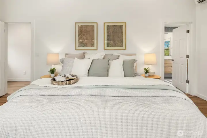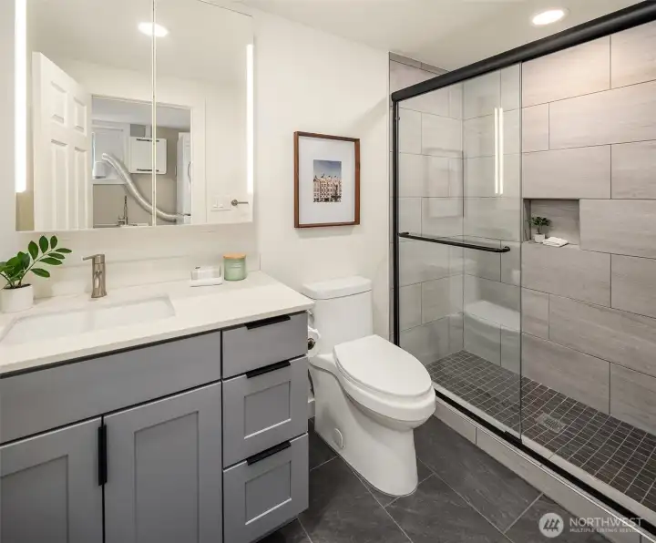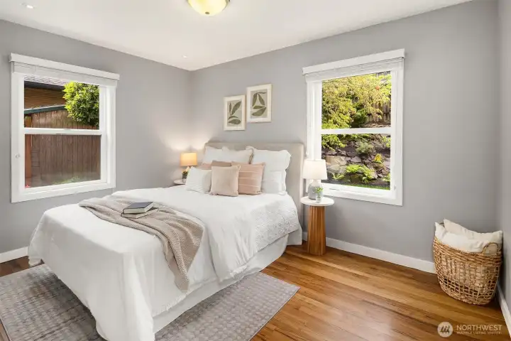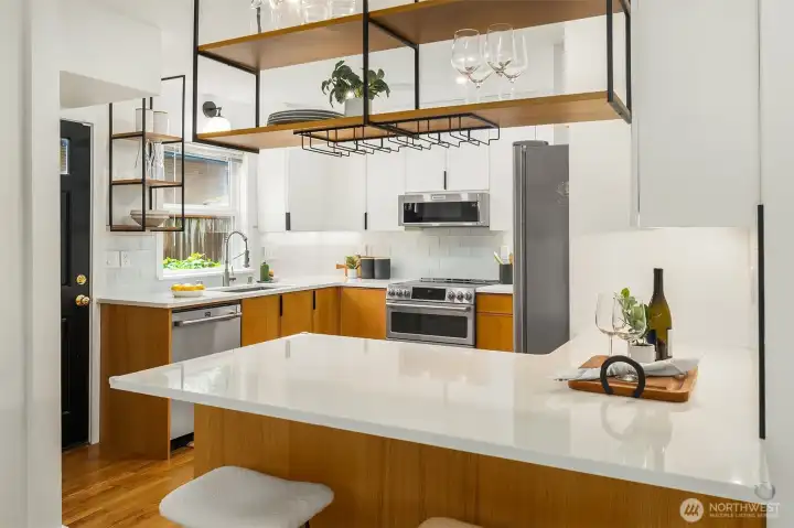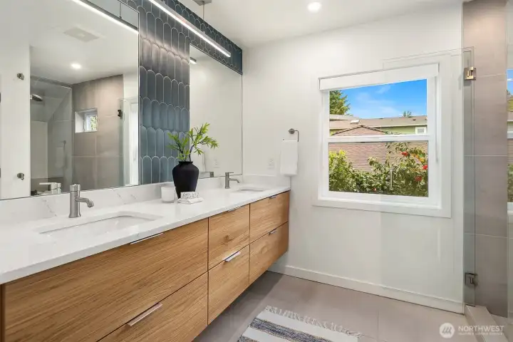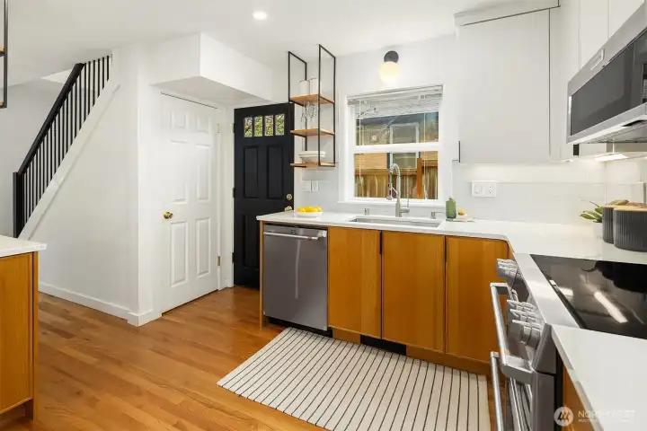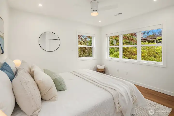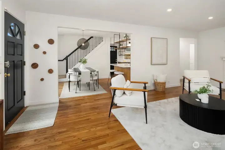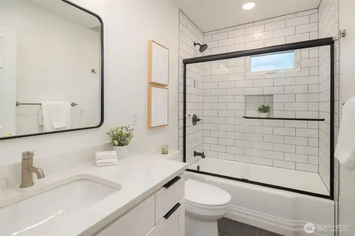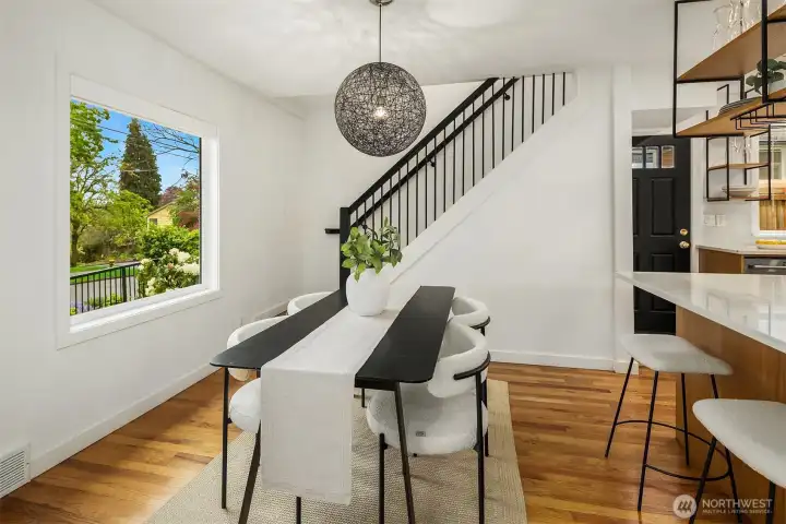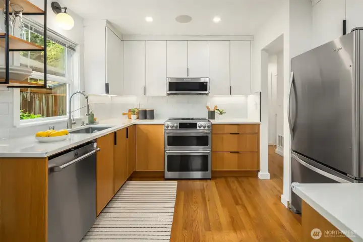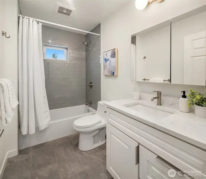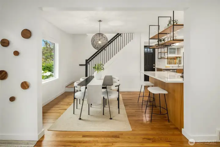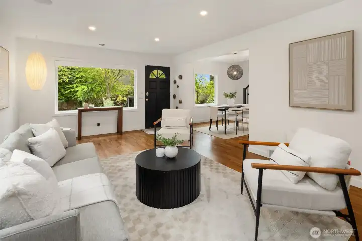 Ideally located on a quiet Ravenna street and fully remodeled in 2021-2022, this home blends clean, modern design with a layout that lives effortlessly for today’s buyer. The main level offers an open-concept floor plan anchored by a stylish kitchen with quartz countertops and open shelving, flowing seamlessly into the living and dining spaces. Thoughtfully positioned guest bedrooms and a chic, updated bath add flexibility and function. Upstairs, the ideal three-bedroom, two-bath layout includes a spa-inspired primary suite that feels like a true retreat. The lower level provides a media room and direct access to the garage, complete with EV capability. Central AC provides year-round comfort. Outside, the backyard is perfectly set up for entertaining, surrounded by beautifully manicured grounds. A turnkey home in one of Seattle’s most sought-after neighborhoods.