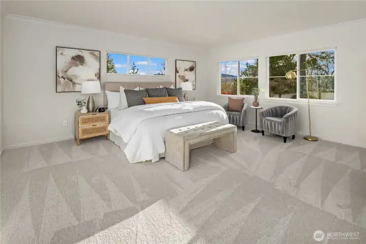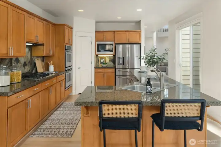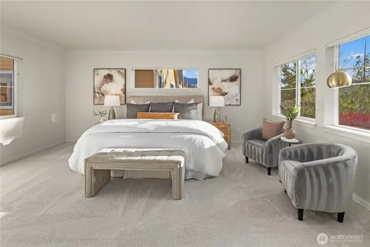 Welcome home to a sanctuary of comfort and style in the Issaquah Highlands. Perfectly positioned near Central Park, this home radiates pride of ownership with recent professional updates including fresh interior paint, new carpet, and refinished hardwood floors. The open-concept main floor is anchored by a gourmet kitchen and a private den, formal living and dining spaces and a large great room overlooking the very private and fully fenced backyard. Upstairs, the primary retreat offers peaceful greenbelt and mountain views, while the large bonus room adds incredible flexibility for theater or playroom. 3 large guest rooms up with an additional bonus space for homework or play. You will enjoy total confidence in the home's infrastructure thanks to a brand-new roof, new furnace, and new Central A/C. The exterior is equally impressive, featuring a quiet courtyard off the kitchen - perfect for barbecues, a 3-car garage, and a wonderful, flat backyard perfect for entertaining. Situated on a protected greenbelt never to be developed. Walking distance to top-rated Grand Ridge Elementary and miles of hiking trails, this turn-key property is a rare find in one of the Highlands' most coveted neighborhoods.