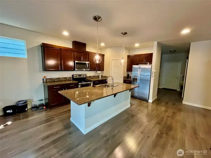 Home located in Puyallup’s gated community, Emerald Pointe, in Sunrise. Built in 2017 with 2334 sqft, this spacious 4 bedroom, 2.5 bath home with Bonus Room/5th bedroom, has space for everyone. Primary lives large with luxury 5-piece ensuite and walk-in closet. You will love the open floor plan that features a large kitchen with granite, breakfast bar pantry and tile backsplash. Also, office with barn door and dining room. Let the HOA maintain your front yard landscaping and irrigation. Community offers parks, trails, playfields, sport courts, and picnic shelters. Home also offers: A/C, extensive laminate wood flooring, soaring 9’ceilings, covered patio, fenced yard and is close to everything!