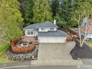 Welcome to this NW Contemporary tri-level tucked into a quiet cul-de-sac and move-in ready from day one. Fresh paint, new LVP flooring, skylights, and stainless steel appliances create a clean, updated feel, while vaulted ceilings and a spacious living area make the home feel open and inviting. The lower level is designed as an additional living and entertainment space, not a typical basement—ideal for movie nights, gatherings, a game room, or a separate retreat that adds real day-to-day functionality. A standout feature is the 3-car garage, providing generous space for parking, storage, hobbies, or a dedicated workspace. Step outside and you’ll find where this home really shines—an expansive deck plus a custom dance/entertainment deck, perfect for hosting, relaxing, or creating your own outdoor experience. The fully fenced backyard backs directly to Spruce Park, offering a private, natural setting with no homes behind. There’s also a built-in playhouse and covered, hidden exterior storage that adds both function and fun. With no HOA, you have the freedom to personalize and enhance the home over time. While it’s ready to enjoy today, there’s still meaningful opportunity to update and add value in a way that fits your vision. Conveniently located near I-5, I-405, Alderwood Mall, and major commuter routes, this home offers a strong blend of comfort, flexibility, and future upside.