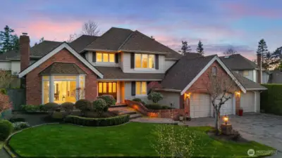 Welcome home to this beautifully maintained gem nestled in the heart of Harbour Pointe's coveted One Club House Lane — a quiet, private retreat that feels worlds away while keeping you close to everything Mukilteo has to offer.Set on a lushly landscaped lot with mature trees and manicured grounds, this Buchan-built 4-bedroom, 2.5-bath home radiates pride of ownership at every turn. A brand new presidential roof and elegant paver hardscaping add striking curb appeal and lasting peace of mind the moment you arrive.Step inside to 2,855 sq ft of thoughtfully designed living space, where vaulted ceilings, skylights, and gleaming hardwood floors fill every room with warmth and natural light. The spacious kitchen is the heart of the home — featuring a large center island with gas cooktop, walk-in pantry, built-in desk, and generous cabinet space, all perfect for everyday living and entertaining alike. Two fireplaces add cozy charm throughout the seasons.The flexible floor plan offers 4 bedrooms plus a den — or easily configured as 3 bedrooms, a den, and a bonus room — giving you the freedom to live the way you choose. French doors, double-pane windows, and a primary suite with walk-in closet round out the thoughtful details inside.Out back, a fully fenced yard with mature landscaping and a patio creates your own private sanctuary — ideal for morning coffee, summer gatherings, or simply unwinding after a long day.Top-rated Mukilteo schools, proximity to the golf course, and low