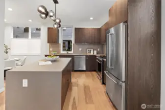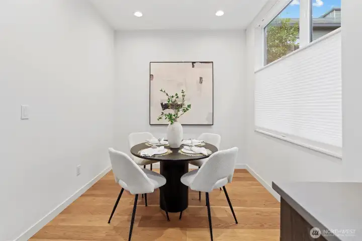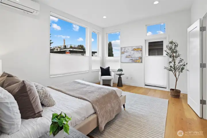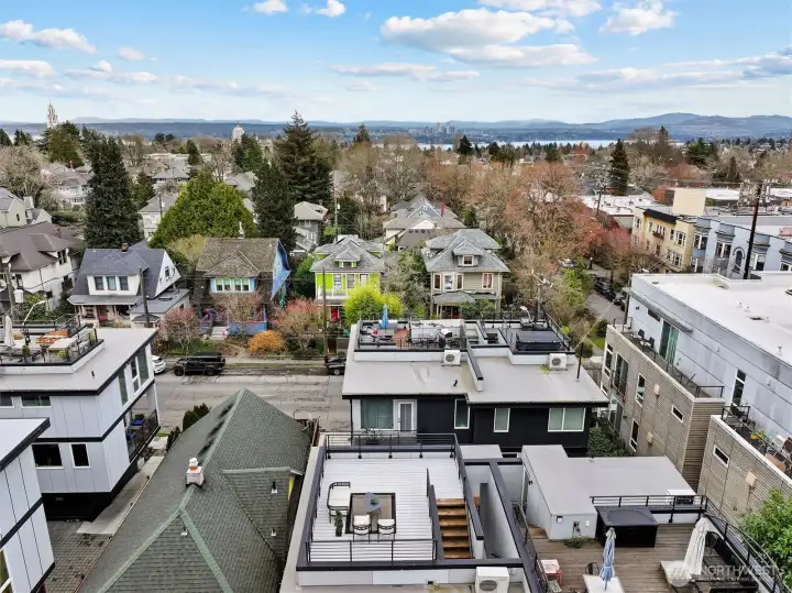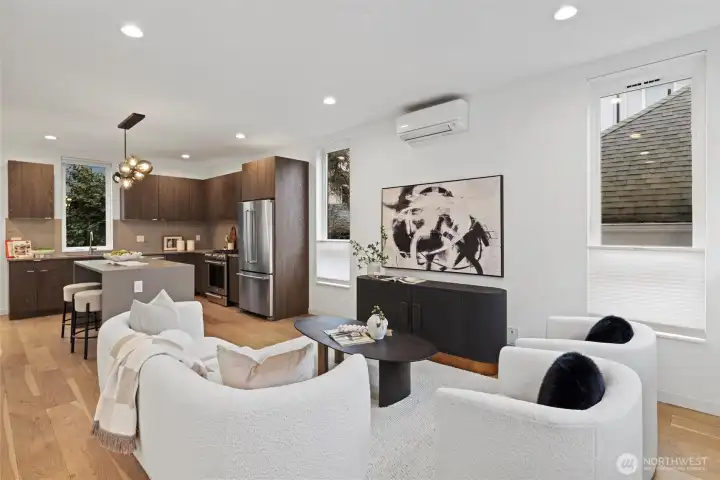 Modern living in the heart of North Capitol Hill! As you enter this light filled home you are greeted with a full size entryway, open stairs plus an extra wide footprint giving the feel of a detached home. Rarely found in this urban pocket, the flexible 2+ bedroom floor plan includes AC and a yard without the maintenance of a detached home. The full size kitchen has a corner layout, island with seating plus a proper dining space! The primary bedroom is oversized, huge custom closet, 5 piece bath, tall ceilings & balcony. This climate-controlled and finished flex space includes a built in Murphy bed and is ideal for a dedicated home office, gym, or media room, including EV charging and can easily be converted back to a garage. The large rooftop deck has gas/water/power serving as a true open air second living area. Blocks from vibrant restaurants, eclectic bars, & boutique shops, this home offers the perfect blend of urban energy & timeless elegance. Stroll 2 blocks up 15th Ave to find yourself beneath tree-lined streets, surrounded by historic mansions to Volunteer Park. A yard for pups, A/C, flex room, EV charger and tons of natural light ensures year-round comfort and convenience in a location that defines Seattleās most walkable area.