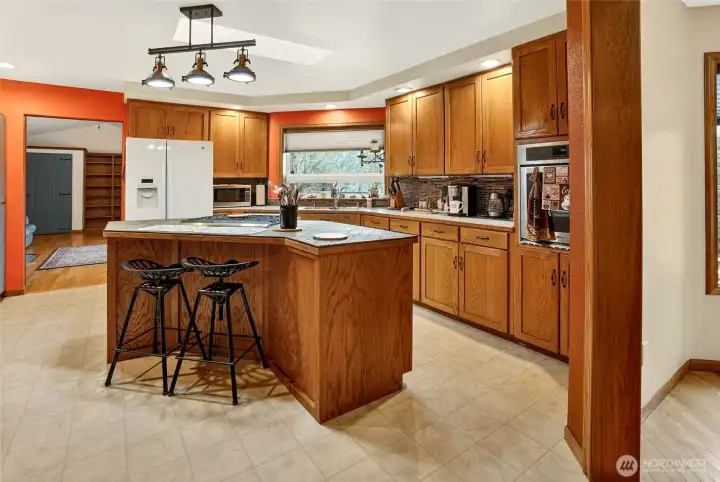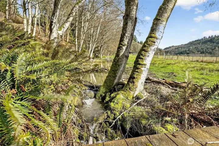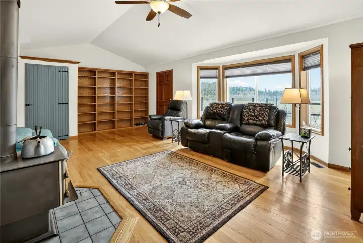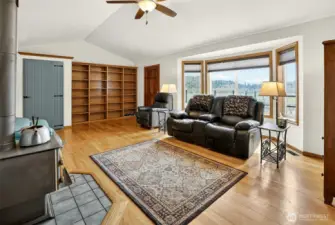Fabulous opportunity for rural privacy and unbelievable views! This custom built rambler offers comfort, warmth, and versatility with hardwood floors, skylights, ceiling fans, solid wood cabinets, built in bookcases, and abundant storage and closet space throughout. The sunny informal dining area is the perfect spot to enjoy breakfast while soaking in the view. Recent improvements include a newer roof, fresh exterior paint, new window blinds, generator hookup, and a recently replaced water heater with circulation pump. Outside, the beautifully landscaped setting features woodsy natural areas, raspberries, flowers, and a charming gazebo, creating a peaceful retreat. The elevated back deck offers sweeping southern views of the pasture and distant mountains and is built with moss proof decking, making it ideal for entertaining or relaxing in the hot tub. Acreage below is set up for horses and animals with a fenced paddock and four section pasture. The red barn adds outstanding flexibility with 220 power, loft/studio space, garage parking, covered firewood storage, shed space, and a bonus room or man cave with propane stove. The hay barn holds up to 70 bales and also includes loft space and power. A gated circular driveway and two RV pads with power complete this exceptional country property.