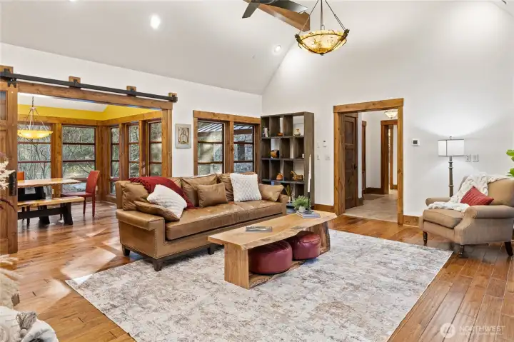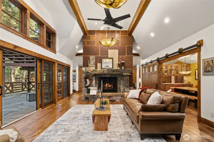 Escape the pace of the city & retreat to your own private mountain sanctuary in the gated community of Tumble Creek, where nature surrounds you & every day feels like a getaway. This 4-bedroom, 3.5-bath home is thoughtfully designed to blend seamlessly w/ its natural surroundings, offering a true sense of peace, comfort, & connection to the outdoors. Situated on just over an acre at the end of a quiet cul-de-sac, the level homesite provides both privacy & usability. From the moment you enter, you’re welcomed by a stunning stone & metal fireplace that anchors the home and creates a warm, gathering space. A beautiful dedicated dining room with a serving bar sets the stage for hosting and entertaining, while multiple bedrooms offer access to outdoor patios—perfect for enjoying your morning coffee surrounded by nature. Designed for relaxation & wellness, the home features in-floor heating, a built-in steam shower/sauna, & a central vacuum system for everyday convenience. One of the most unique highlights is the custom-built treehouse by renowned Treehouse Master Pete Nelson—an unforgettable feature that brings charm, adventure, and lasting memories. Step outside to miles of trails right from your doorstep, or take a short stroll to the Great House and the Tom Doak–designed golf course. Whether you’re seeking a full-time residence or a weekend escape, this home captures the essence of the Tumble Creek lifestyle—privacy, natural beauty, all just a short drive from the city.