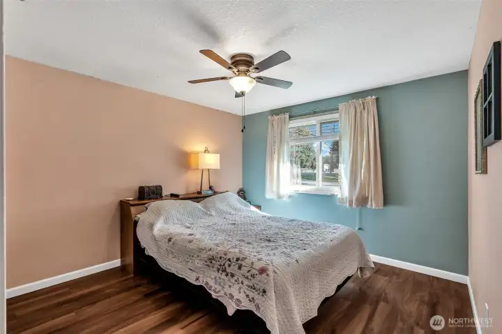 Welcome to this charming 1-level ranch-style home offering 3 bedrooms and 2 bathrooms in a cozy and convenient setting. Inside, you’ll find hardwood floors throughout and a thoughtfully designed layout. The sunken living room is full of character, featuring a beautiful fireplace, ceiling fan, and a bright bay window that fills the space with natural light. The newly remodeled kitchen is spacious and inviting, with sliding doors that open directly to the backyard, creating a seamless indoor-outdoor flow—perfect for entertaining. A dedicated utility room adds everyday functionality. The primary bedroom includes an ensuite bathroom and ceiling fan, while a secondary bedroom also features a ceiling fan for added comfort. Step outside to enjoy the freshly planted lawn, new fencing, and a private backyard space ready for relaxation or gatherings. Situated as an end unit on a charming, quiet street, this home offers both privacy and convenience, just minutes from restaurants, grocery stores, and everyday amenities. A perfect blend of comfort, style, and location!