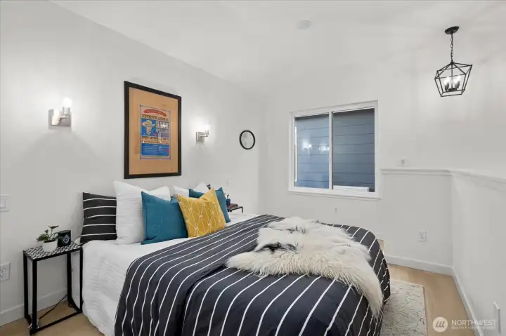 Discover modern, attainable living in this thoughtfully designed loft-style home featuring soaring ceilings, abundant natural light, and striking reclaimed wood accents that bring warmth, texture, and a one-of-a-kind character to the space. The open concept layout flows seamlessly into a stylish kitchen with quartz countertops and designer tile, while two beautifully finished bathrooms offer flexibility and comfort. Enjoy year round comfort with energy efficient heating and cooling, designed for both performance and cost savings. Step outside to a spacious, fully fenced yard, perfect for entertaining, pets, or simply enjoying your own private outdoor retreat. A rare opportunity to own new construction with timeless materials, efficient design, and incredible value.