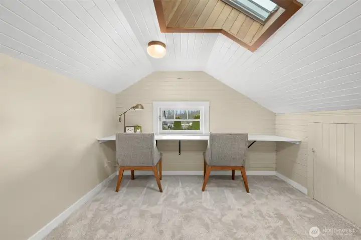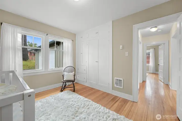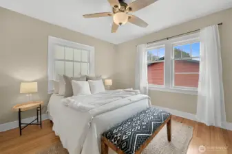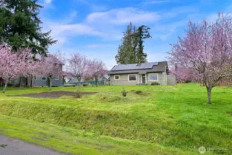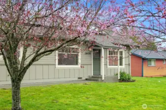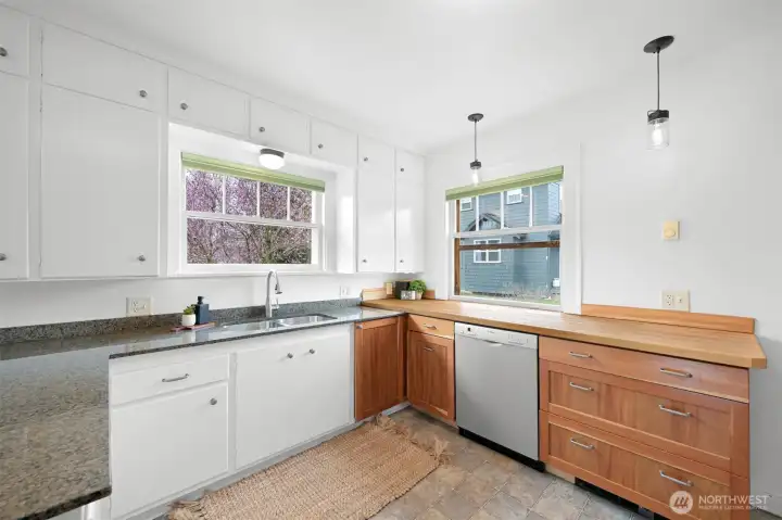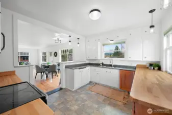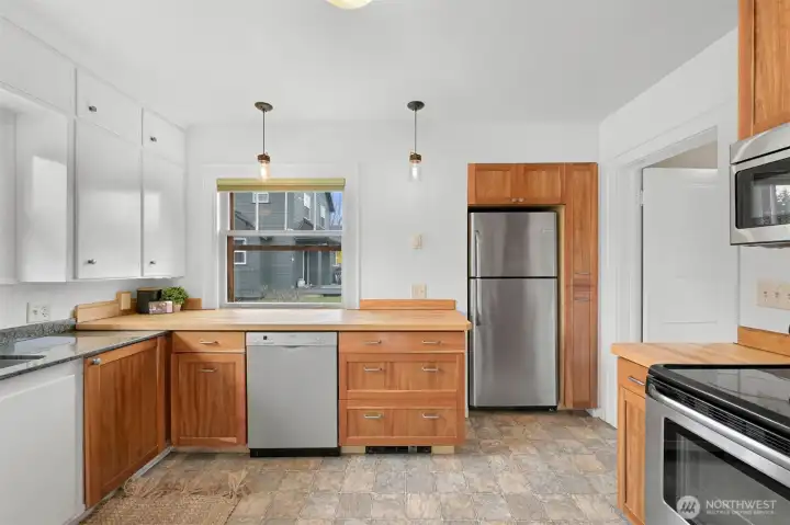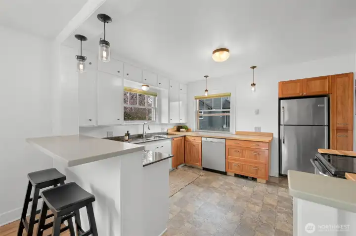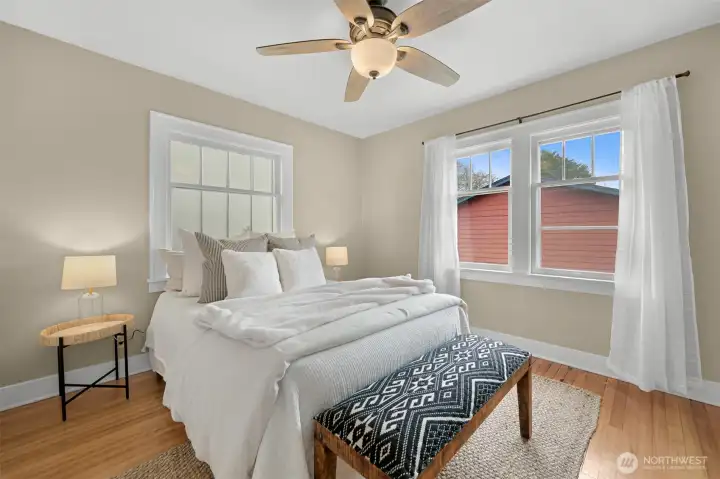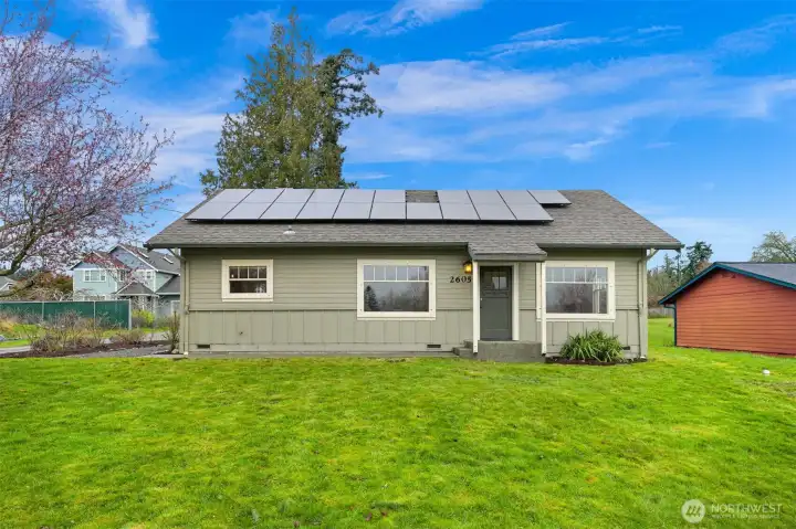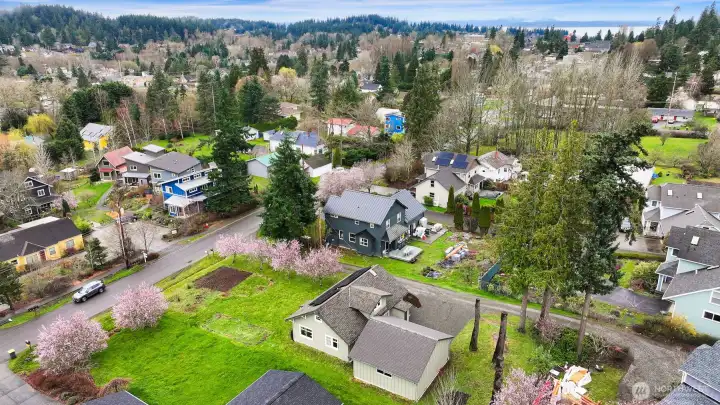 Located on a quiet dead-end street in a desirable South-end neighborhood, this home offers excellent sun exposure and Chuckanut Mountain views. The south-facing living, dining & kitchen fill the home with natural light year-round. Features include custom cherry cabinets with pull-out shelving, original built-in closets and hardwood floors, brand new carpet, a large detached 2-car garage and energy-efficient solar panels. The sunny yard is ideal for gardening and outdoor living, and the large lot offers ADU potential. Conveniently located within easy walking distance to Fairhaven, schools and the Interurban Trail. Enjoy sunny living, mountain views, and exceptional access to Bellingham’s outdoor lifestyle with all the charm this home has to offer!